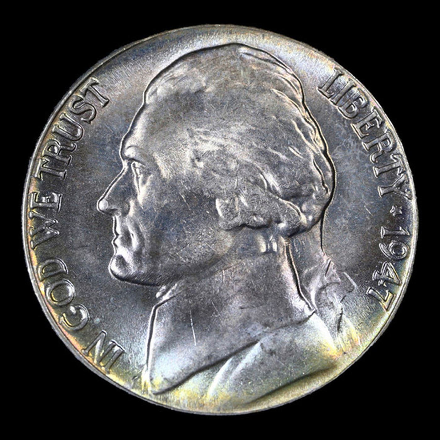 1947-d Jefferson Nickel 5c Grades GEM Unc.