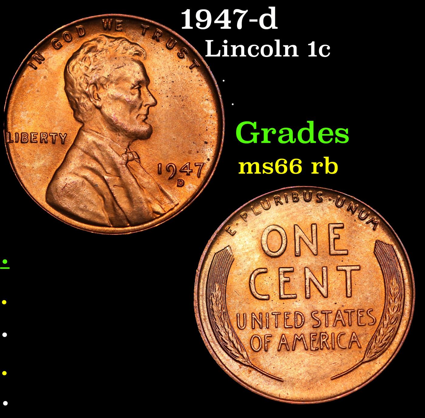1947-d Lincoln Cent 1c Grades GEM+ Unc RB.