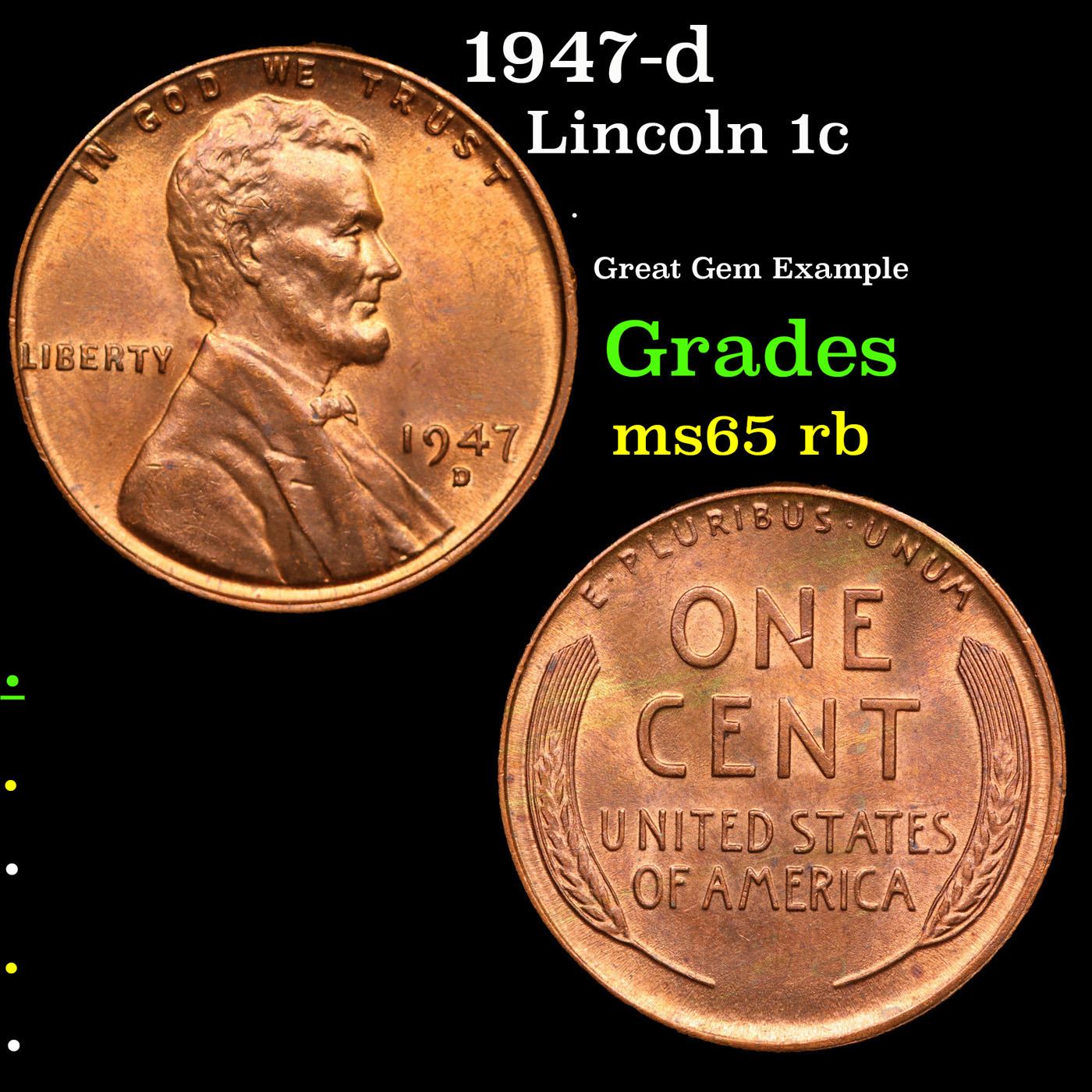 1947-d Lincoln Cent 1c Grades GEM Unc RB.