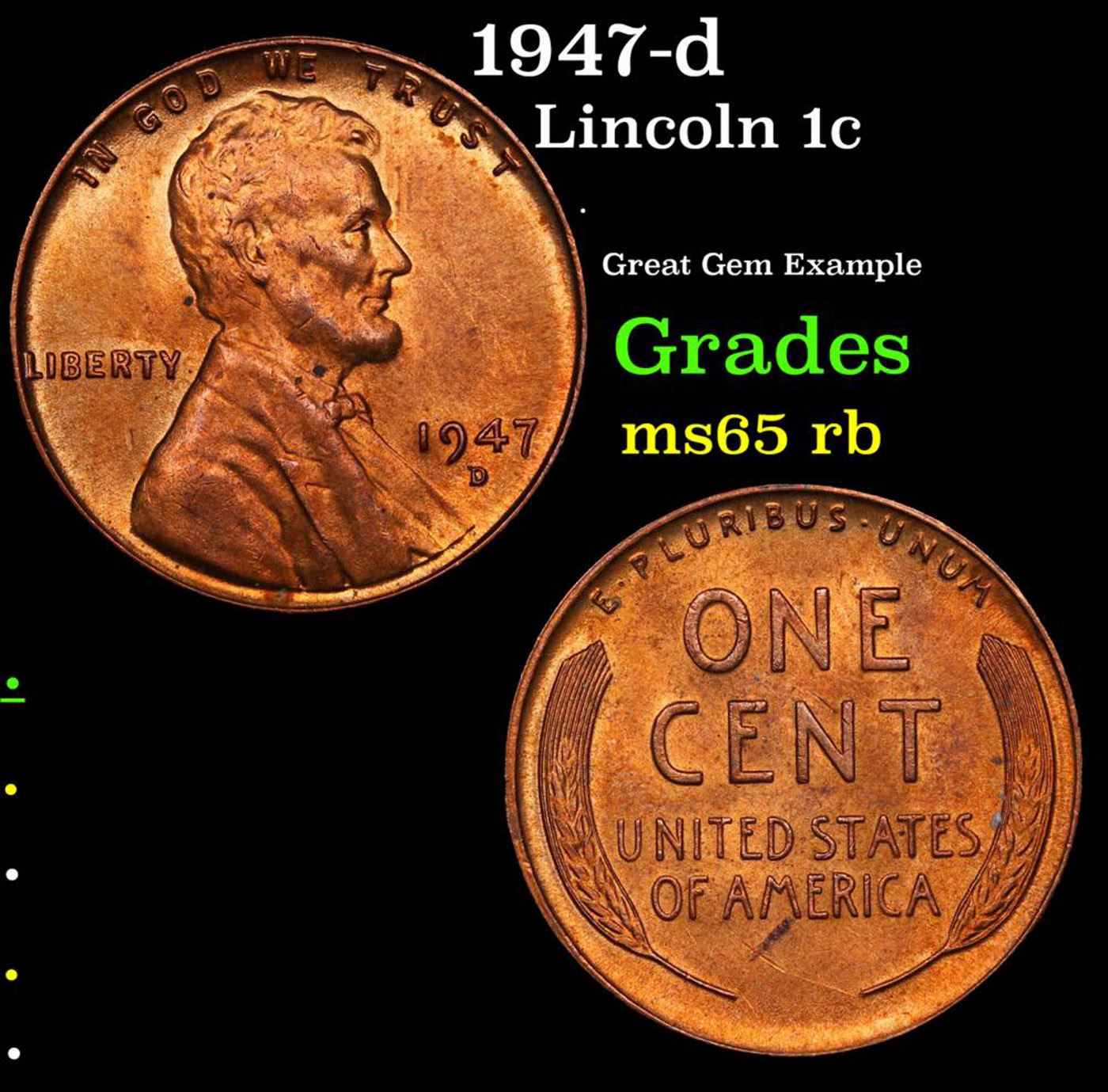1947-d Lincoln Cent 1c Grades GEM Unc RB.