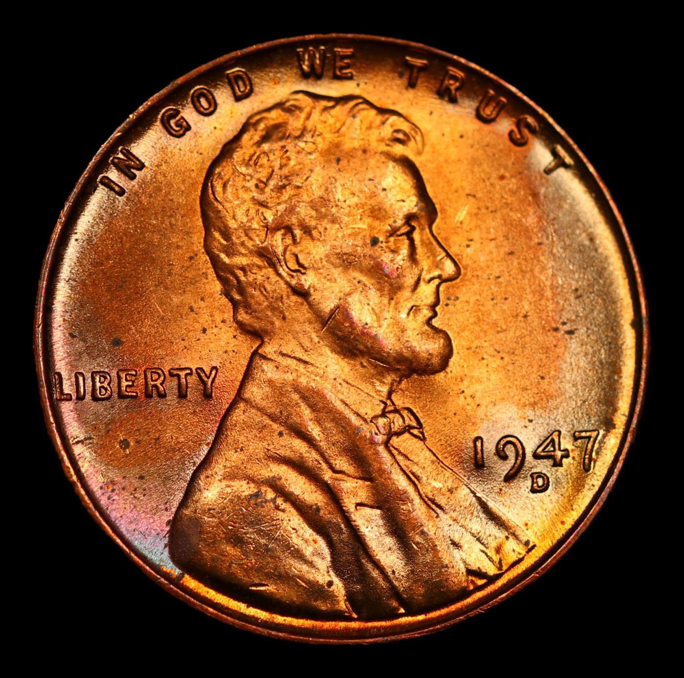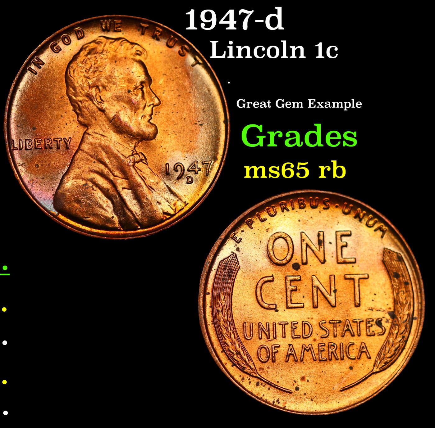 1947-d Lincoln Cent 1c Grades GEM Unc RB.