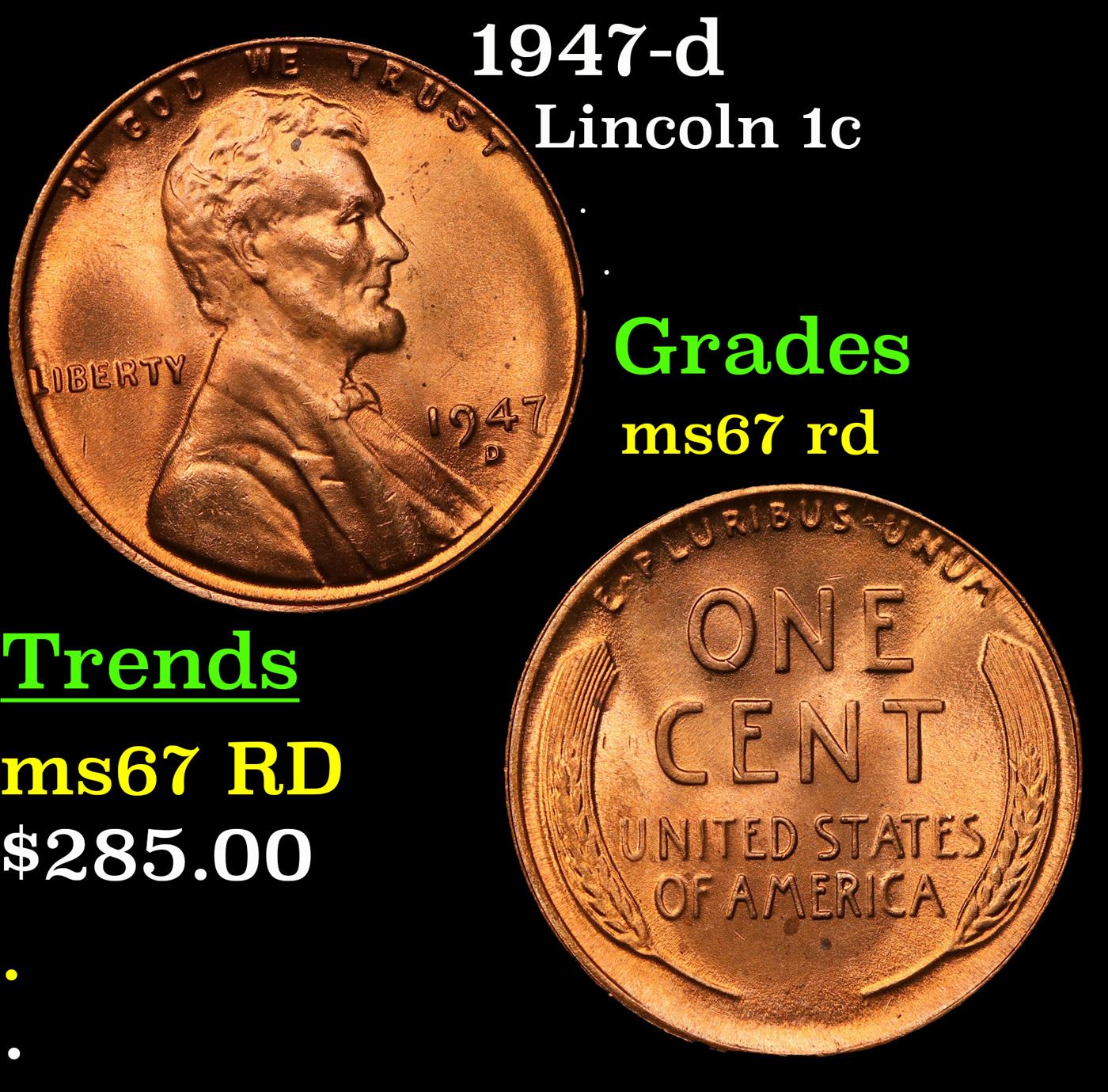 1947-d Lincoln Cent 1c Grades GEM++ Unc RD.