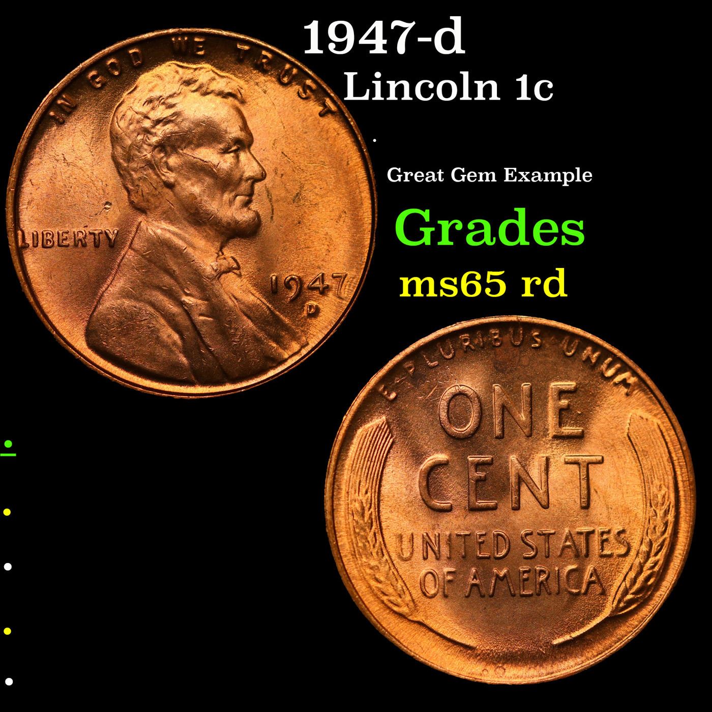 1947-d Lincoln Cent 1c Grades GEM Unc RD.