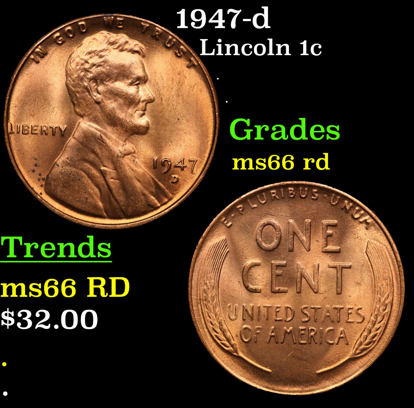 1947-d Lincoln Cent 1c Grades GEM+ Unc RD.