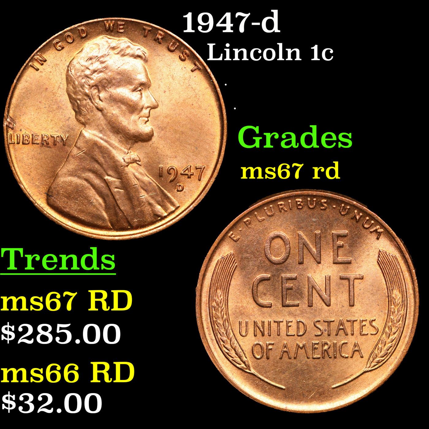 1947-d Lincoln Cent 1c Grades GEM++ Unc RD.