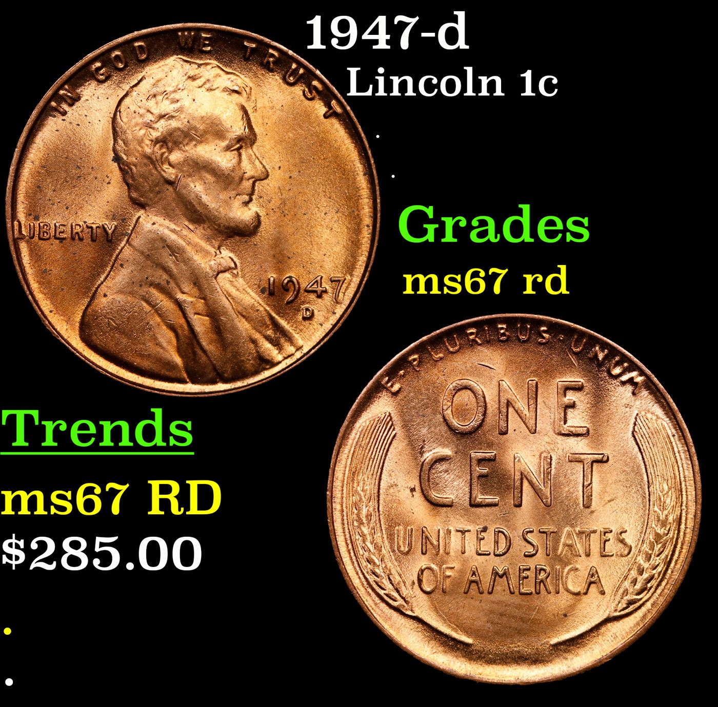1947-d Lincoln Cent 1c Grades GEM++ Unc RD.