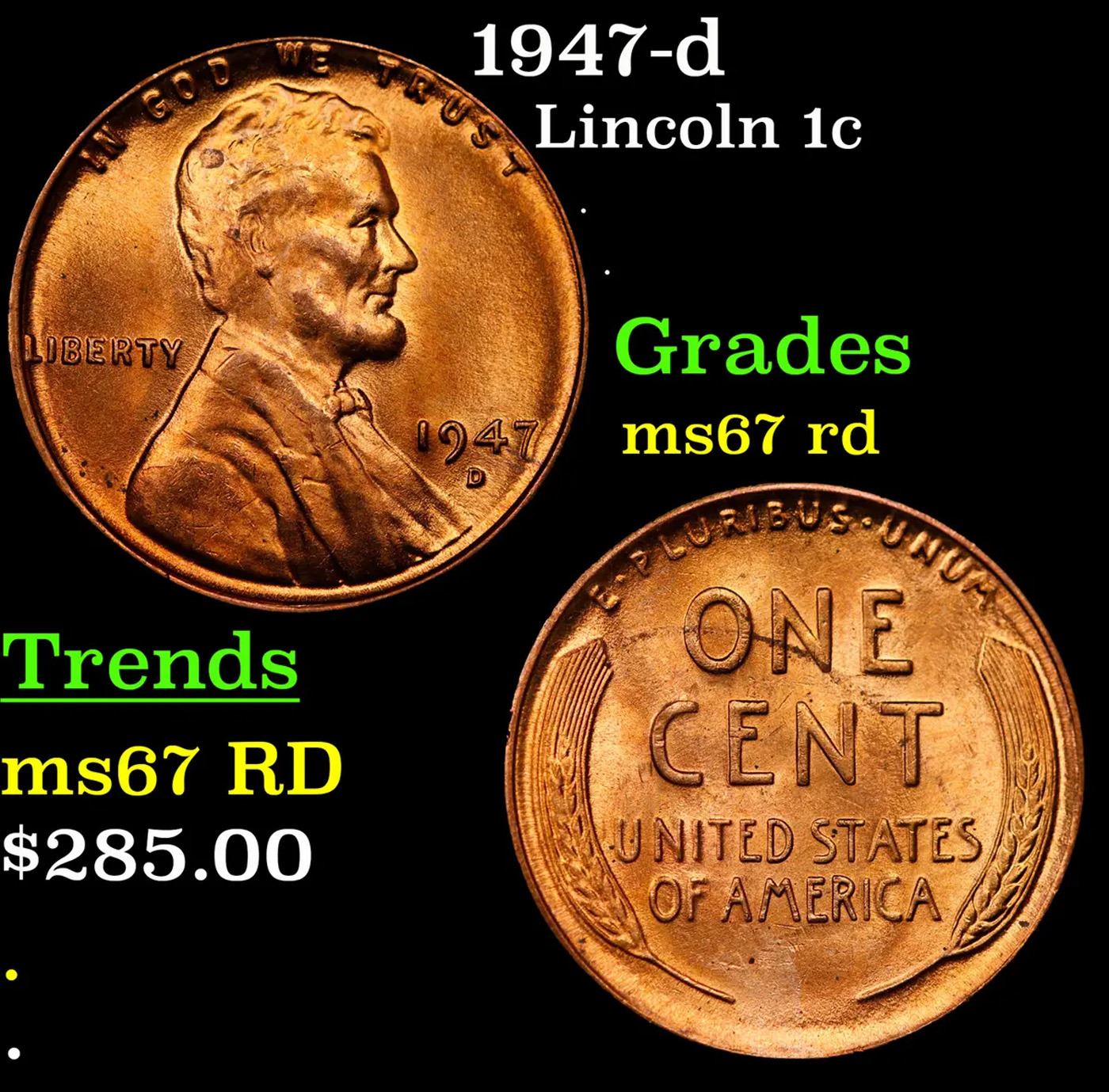 1947-d Lincoln Cent 1c Grades GEM++ Unc RD.