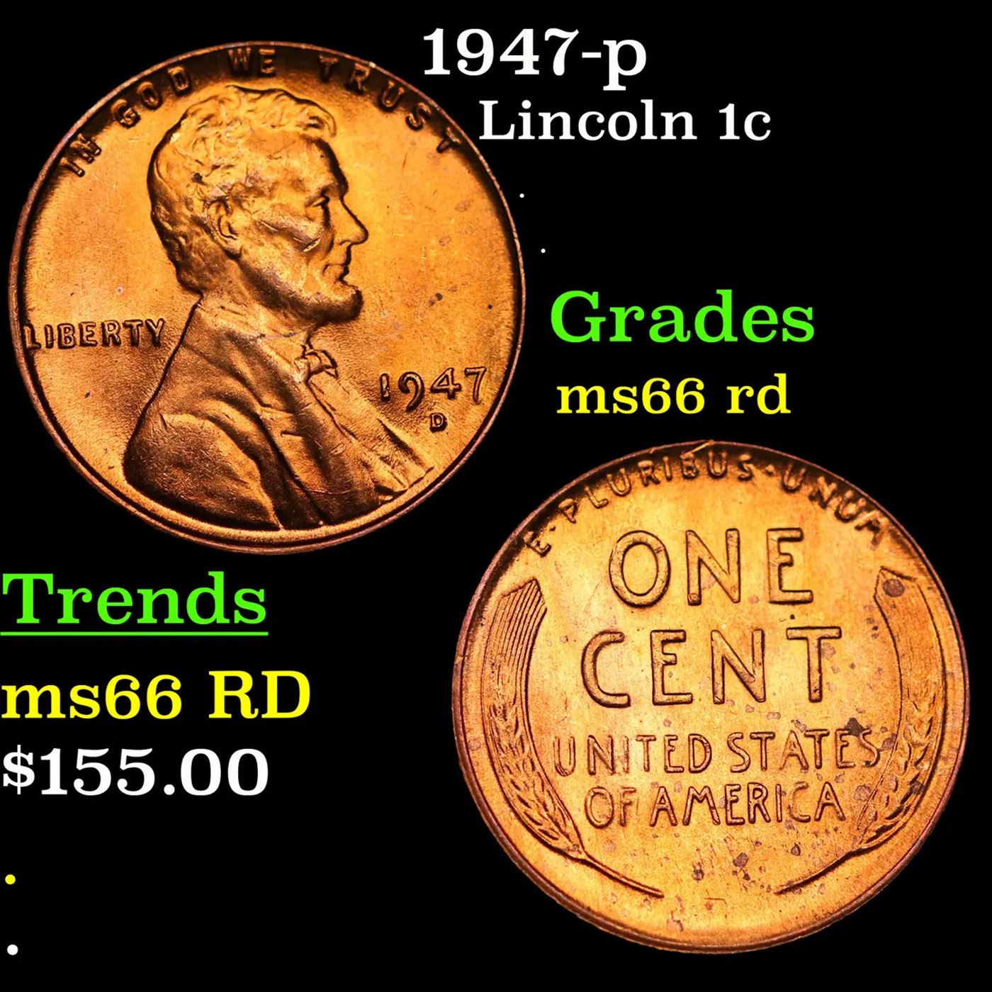 1947-d Lincoln Cent 1c Grades GEM+ Unc RD.