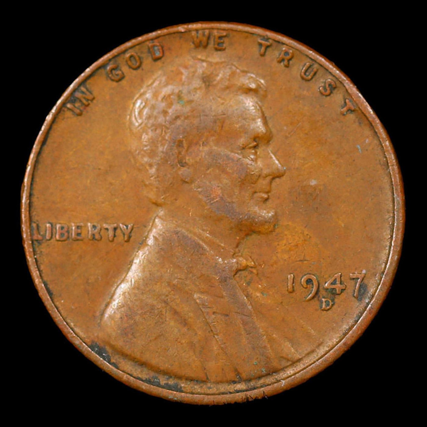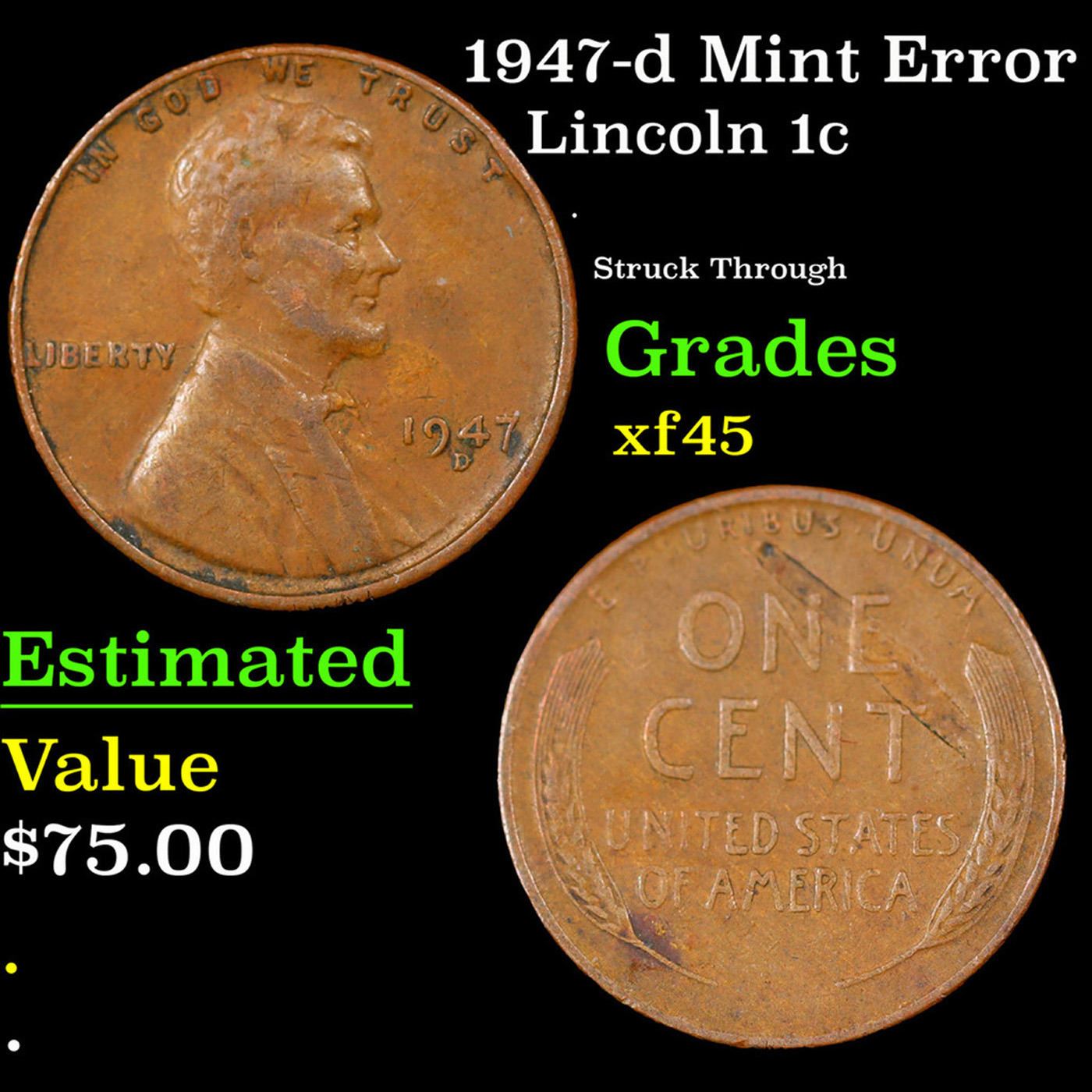 1947-d Mint Error Lincoln Cent 1c Grades xf+.