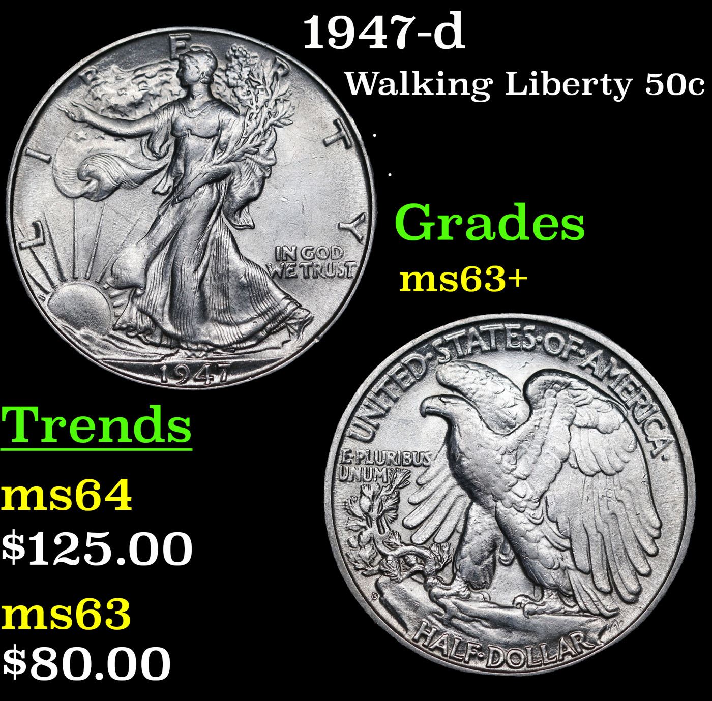 1947-d Walking Liberty Half Dollar 50c Grades Select+ Unc.