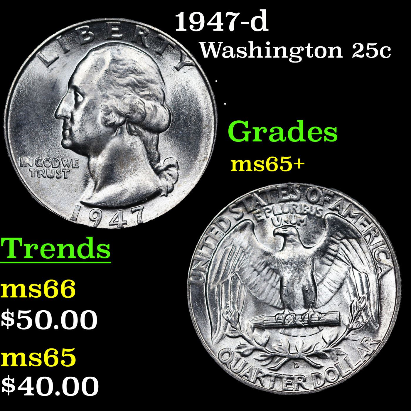 1947-d Washington Quarter 25c Grades GEM+ Unc.