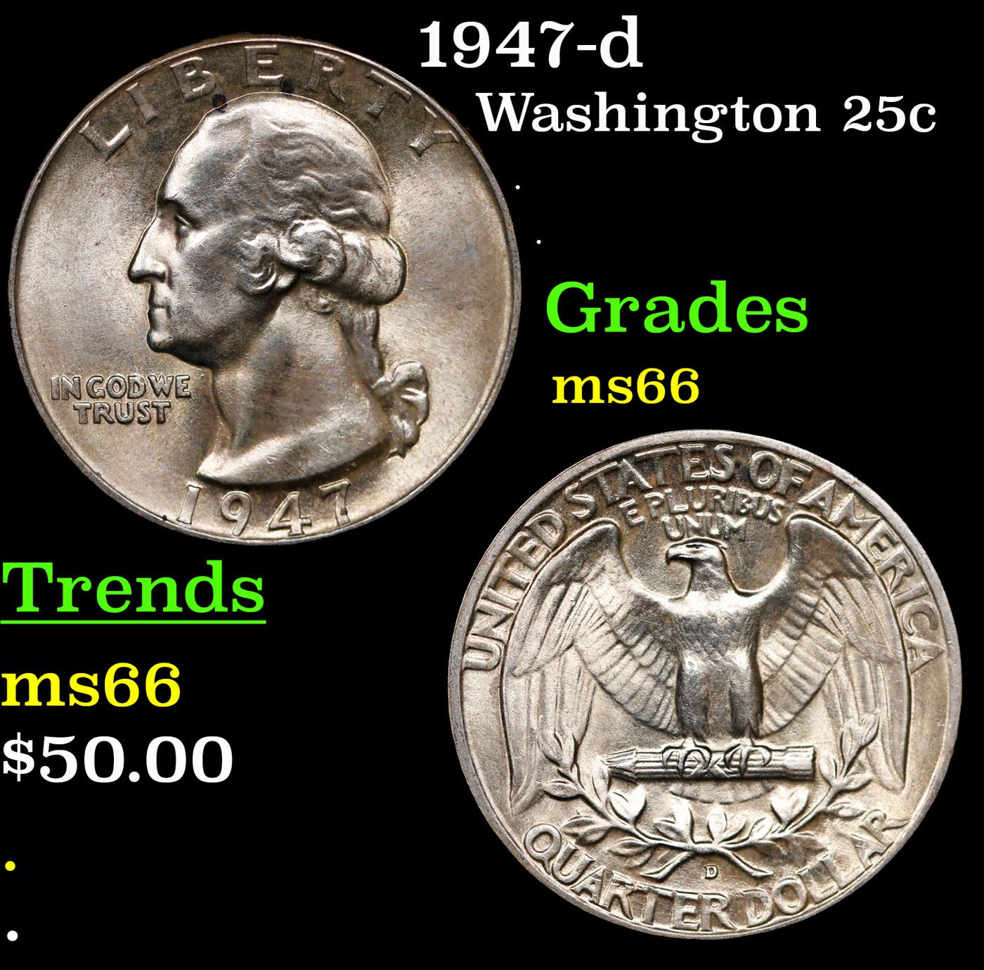 1947-d Washington Quarter 25c Grades GEM+ Unc.