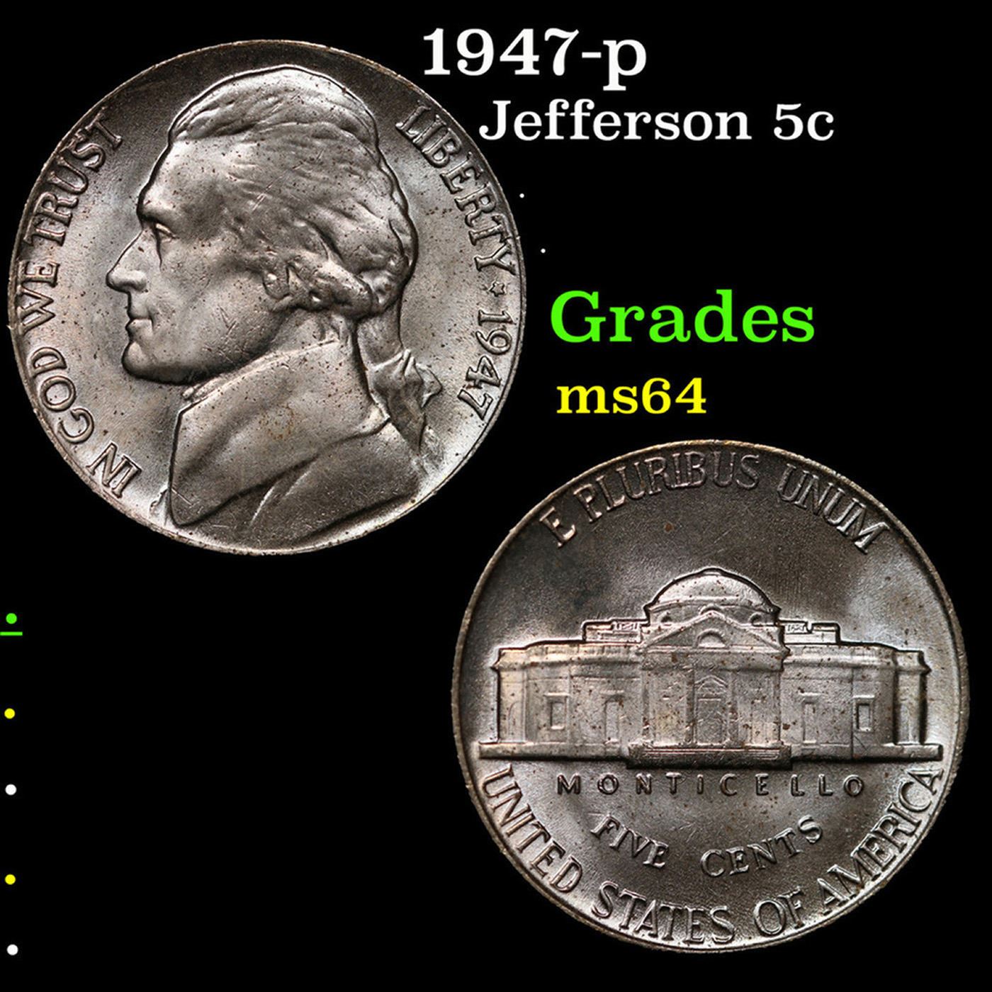 1947-p Jefferson Nickel 5c Grades Choice Unc.