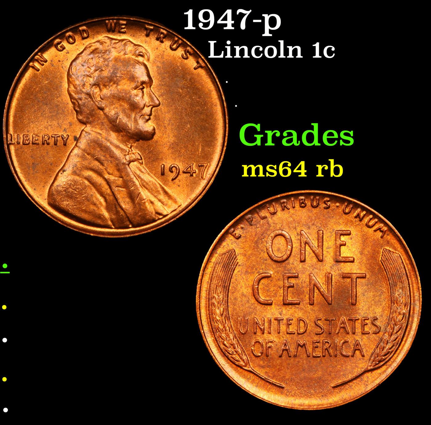 1947-p Lincoln Cent 1c Grades Choice Unc RB.