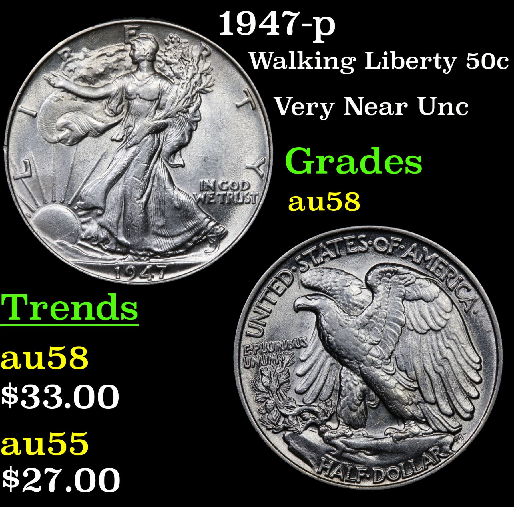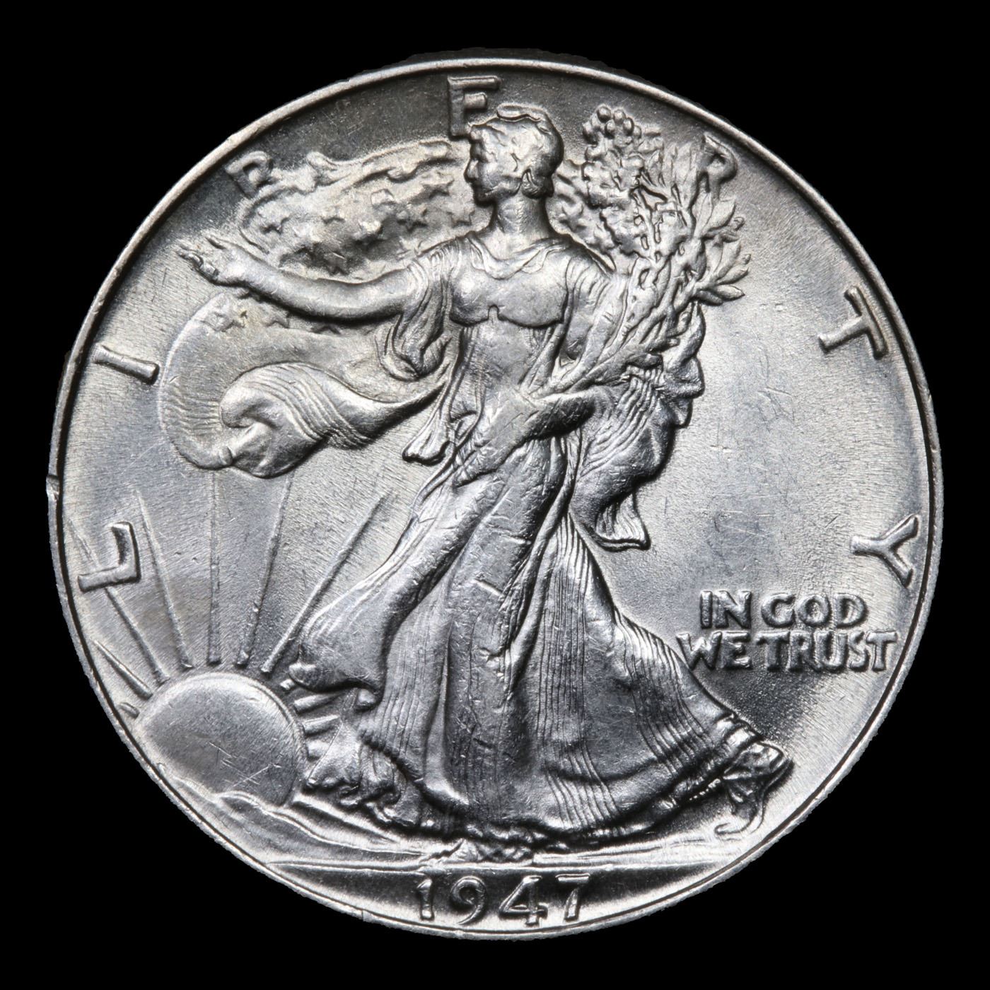 1947-p Walking Liberty Half Dollar 50c Grades Choice AU/BU Slider.