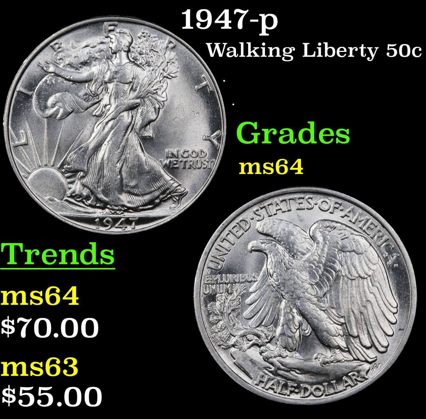 1947-p Walking Liberty Half Dollar 50c Grades Choice Unc.
