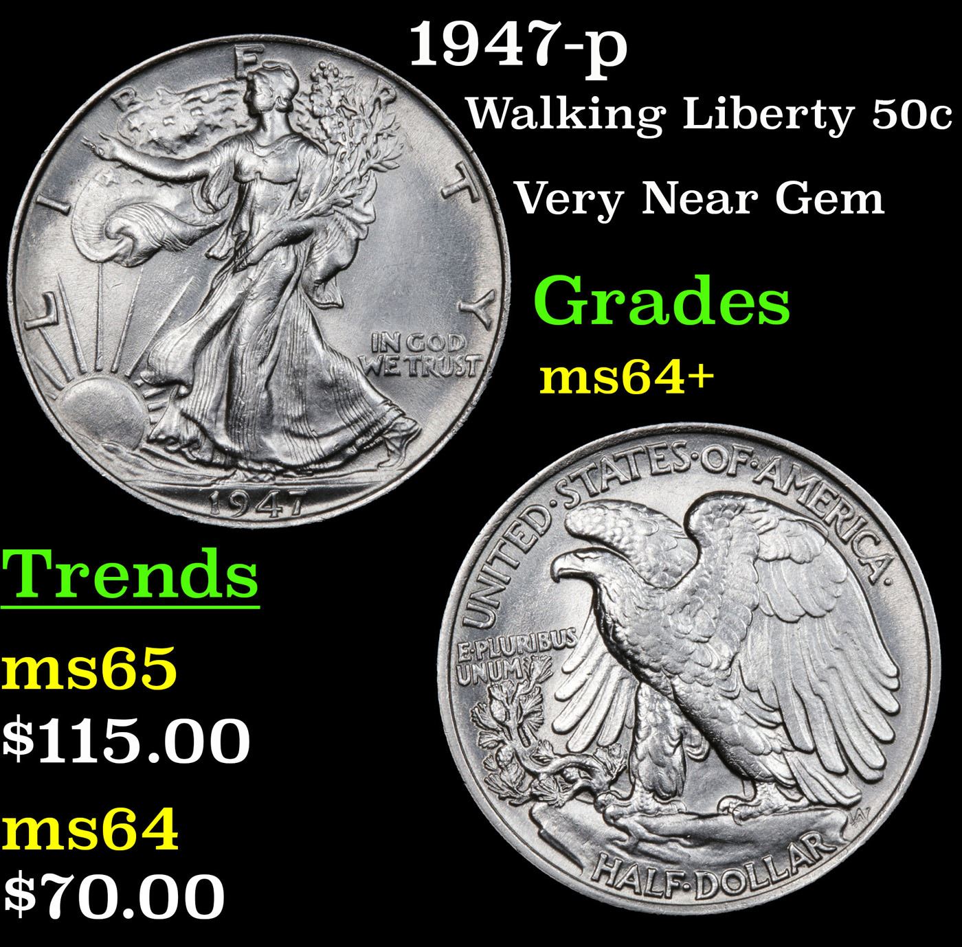 1947-p Walking Liberty Half Dollar 50c Grades Choice+ Unc.