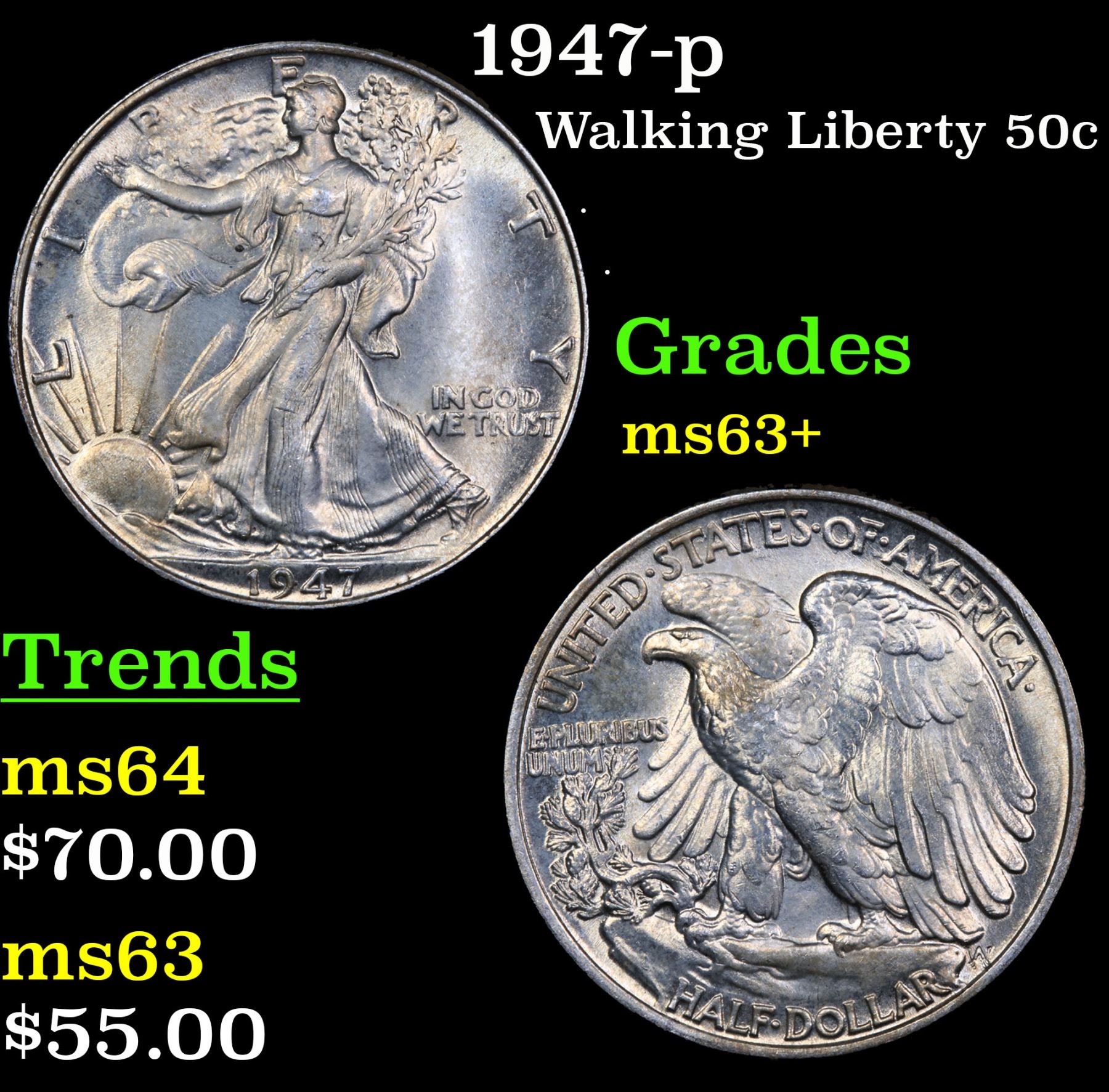 1947-p Walking Liberty Half Dollar 50c Grades Select+ Unc.