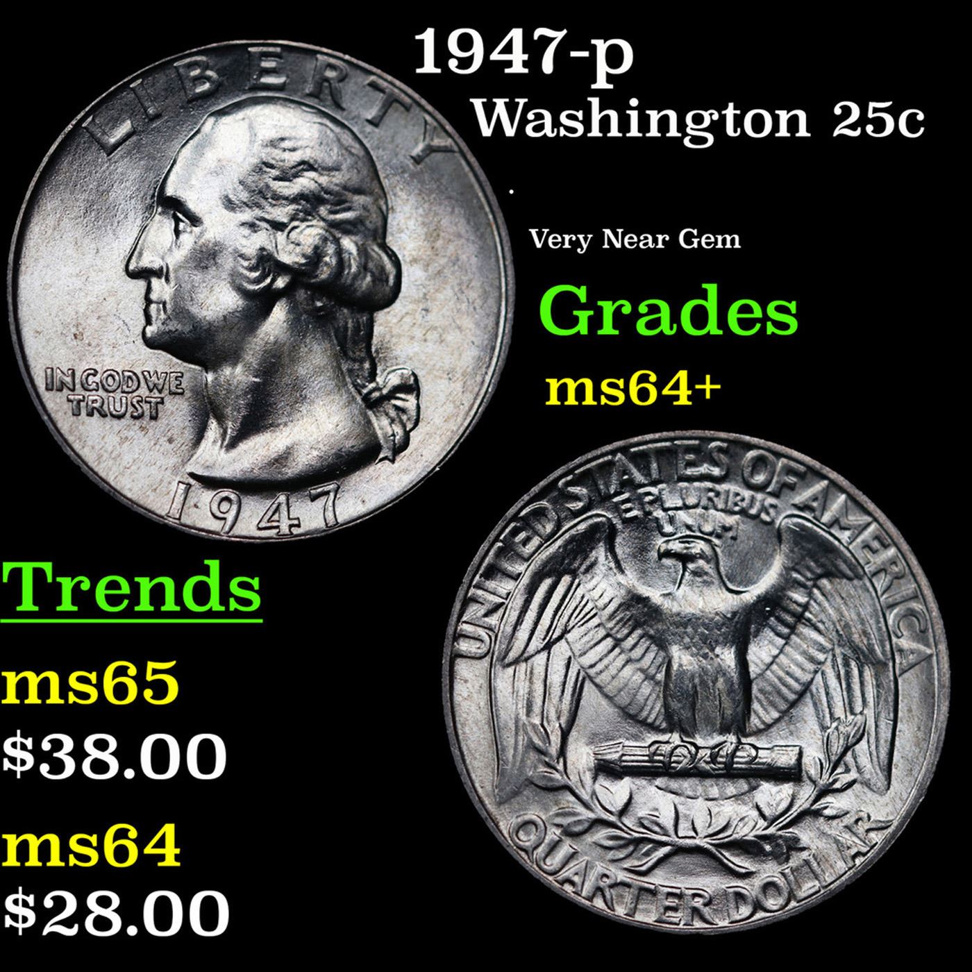 1947-p Washington Quarter 25c Grades Choice+ Unc.