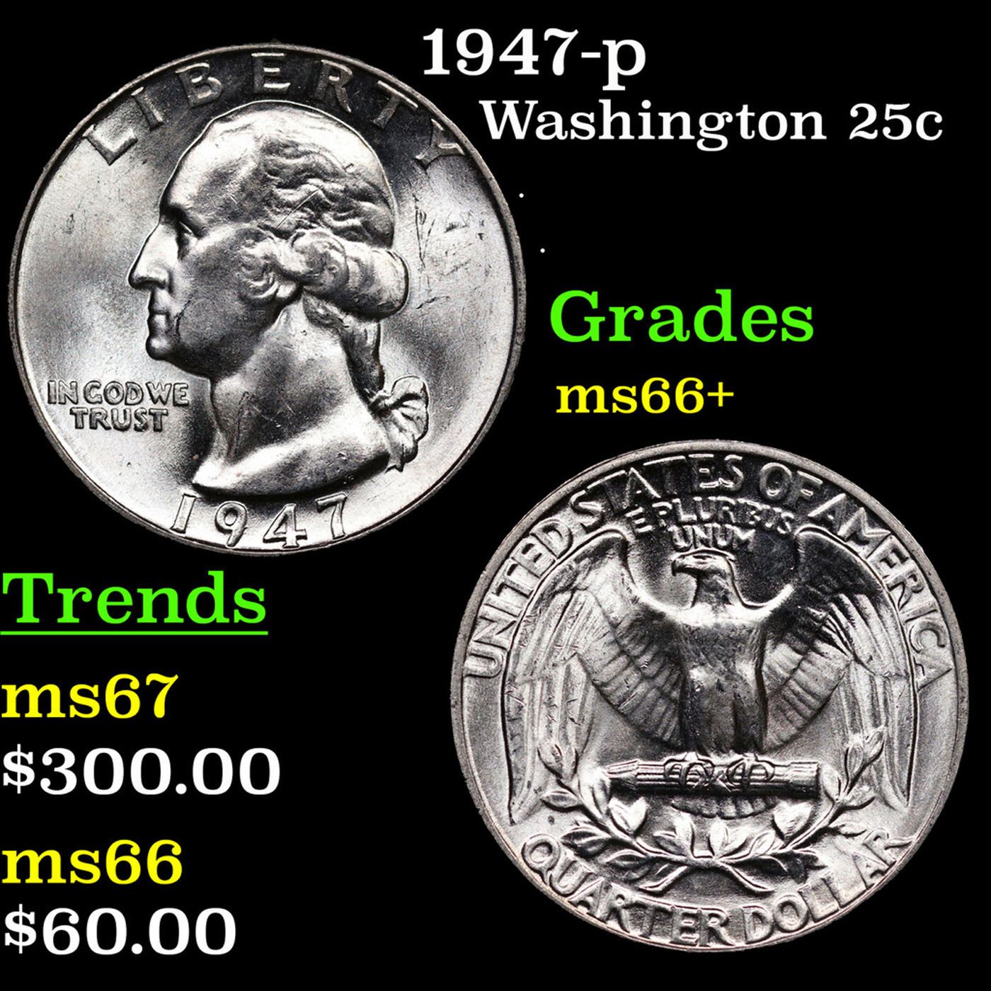 1947-p Washington Quarter 25c Grades GEM++ Unc.