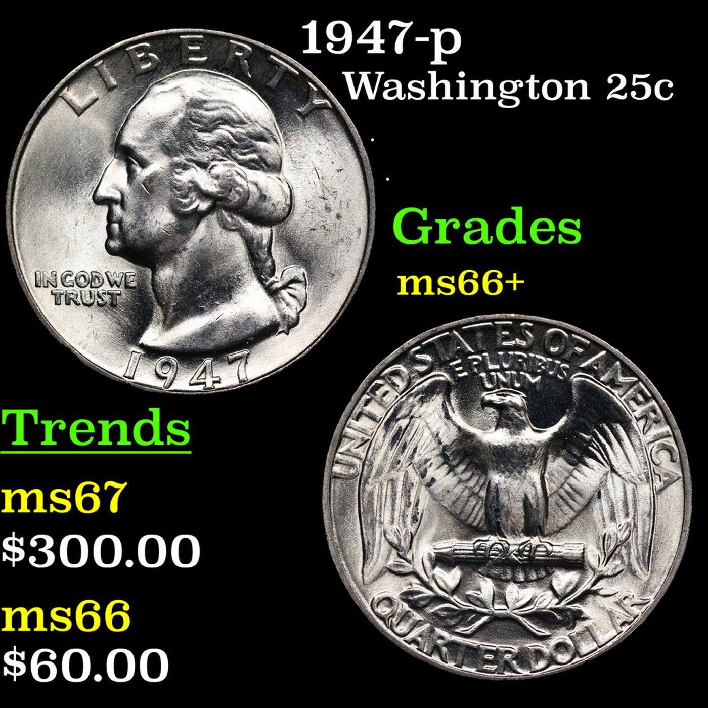 1947-p Washington Quarter 25c Grades GEM++ Unc.