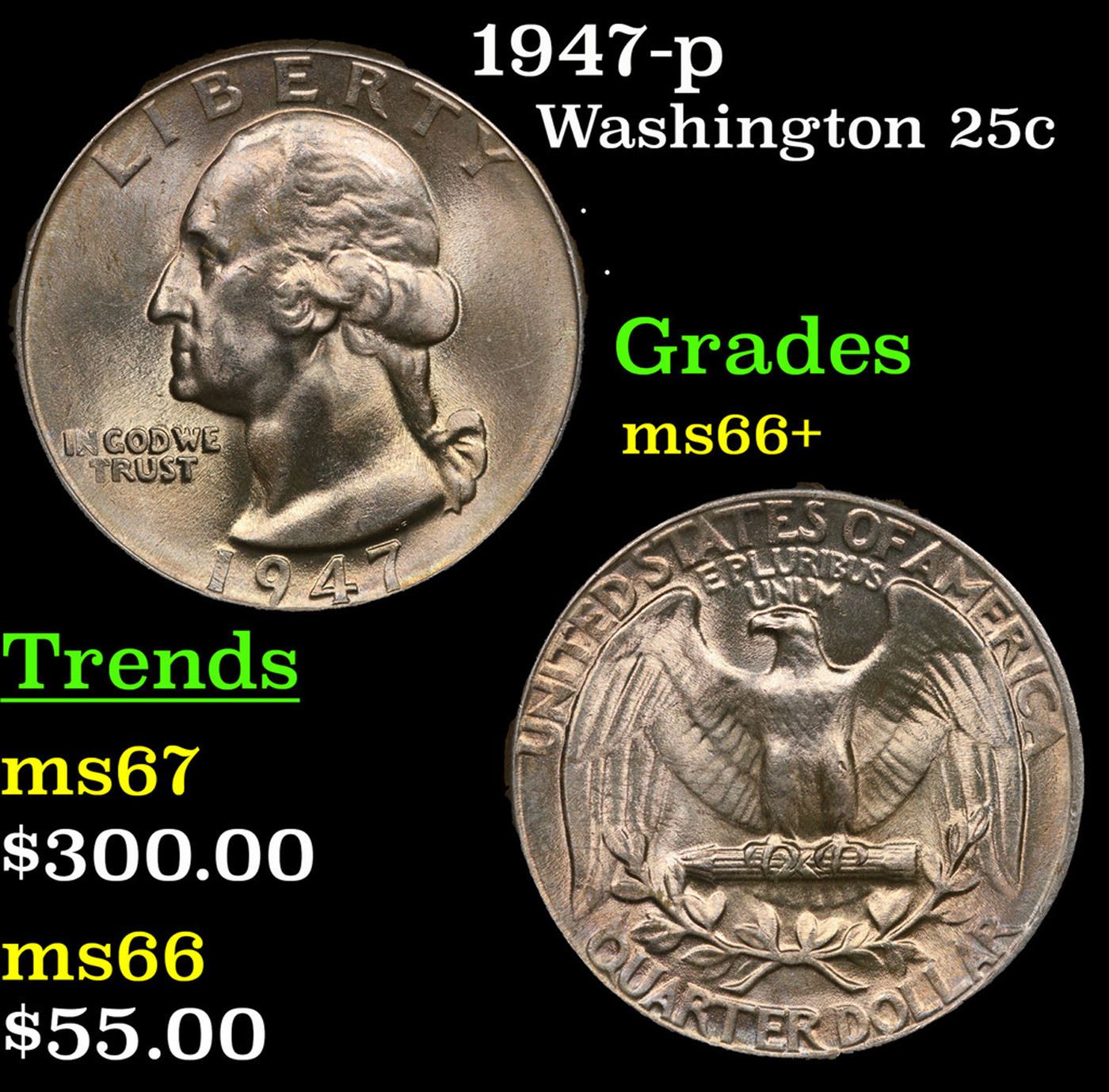 1947-p Washington Quarter 25c Grades GEM++ Unc.