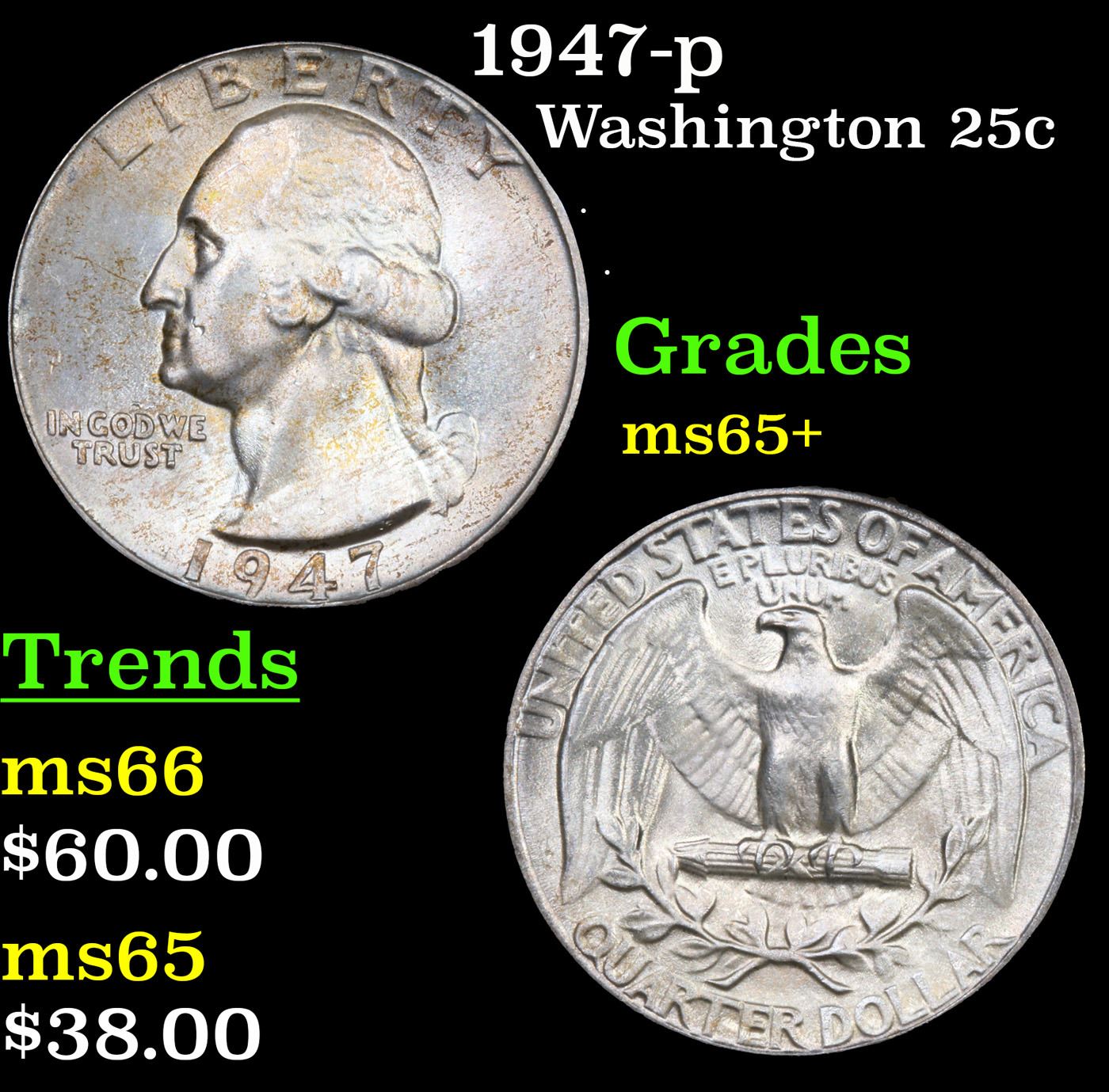 1947-p Washington Quarter 25c Grades GEM+ Unc.