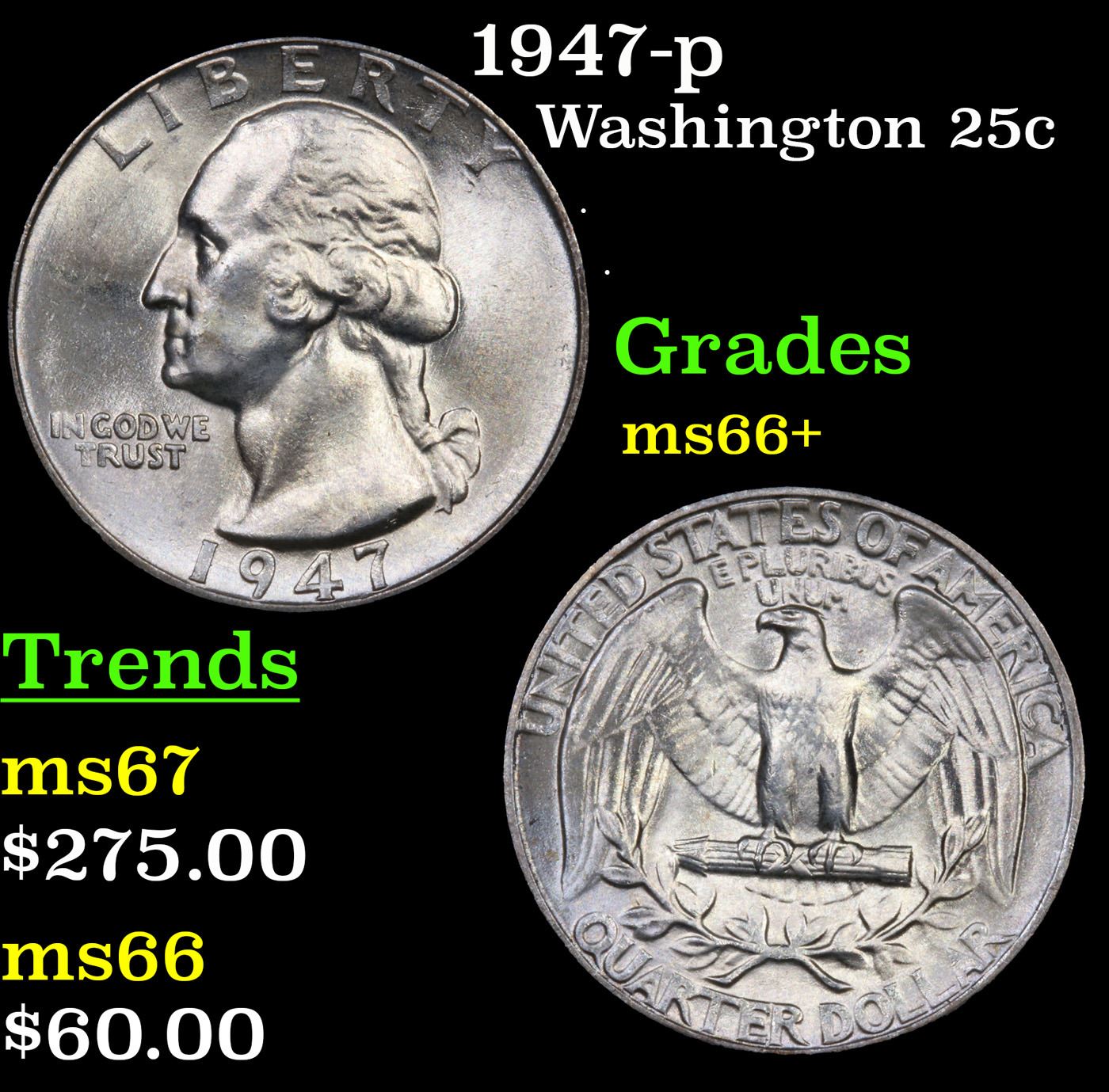 1947-p Washington Quarter 25c Grades GEM++ Unc.