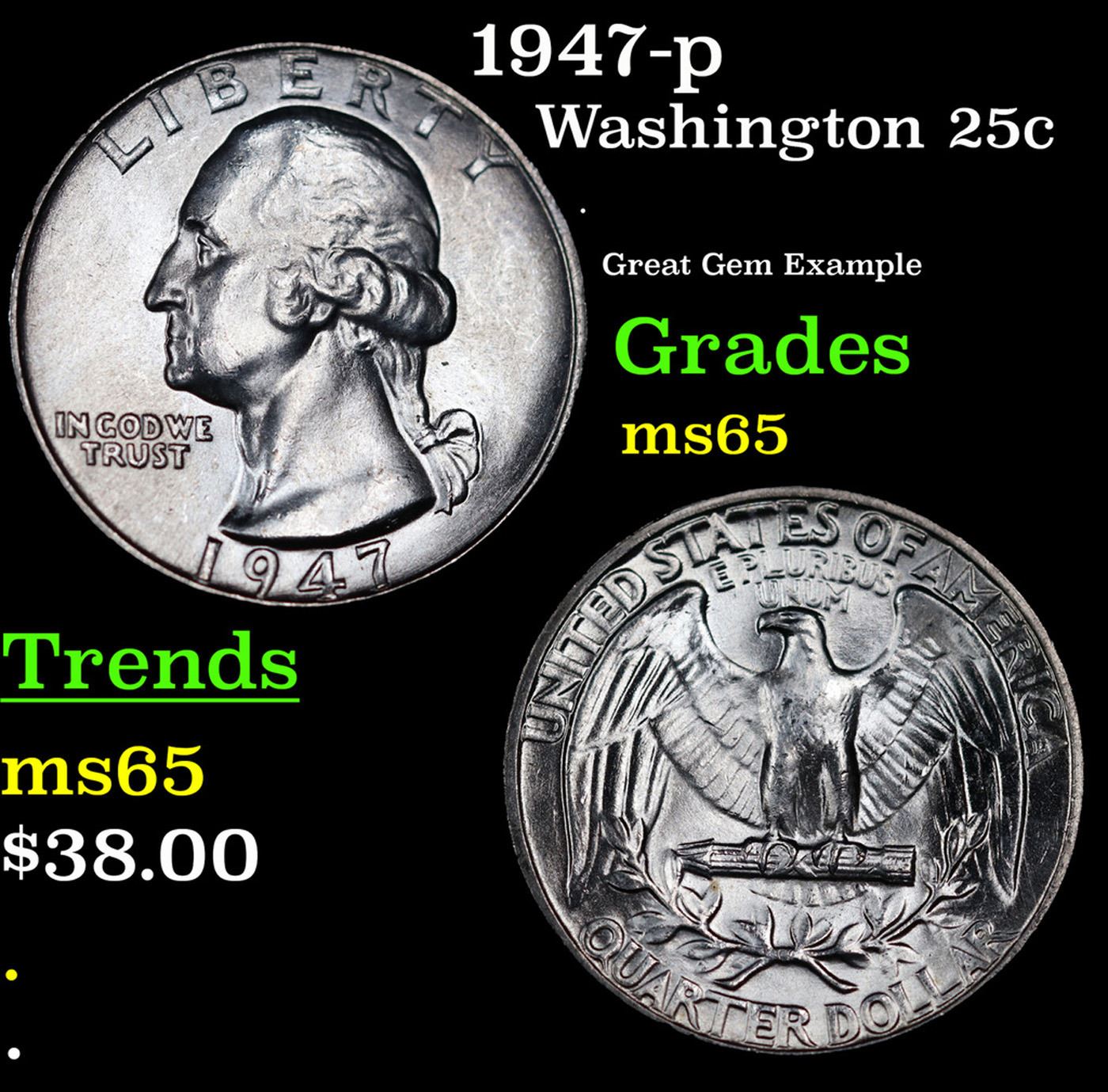 1947-p Washington Quarter 25c Grades GEM Unc.