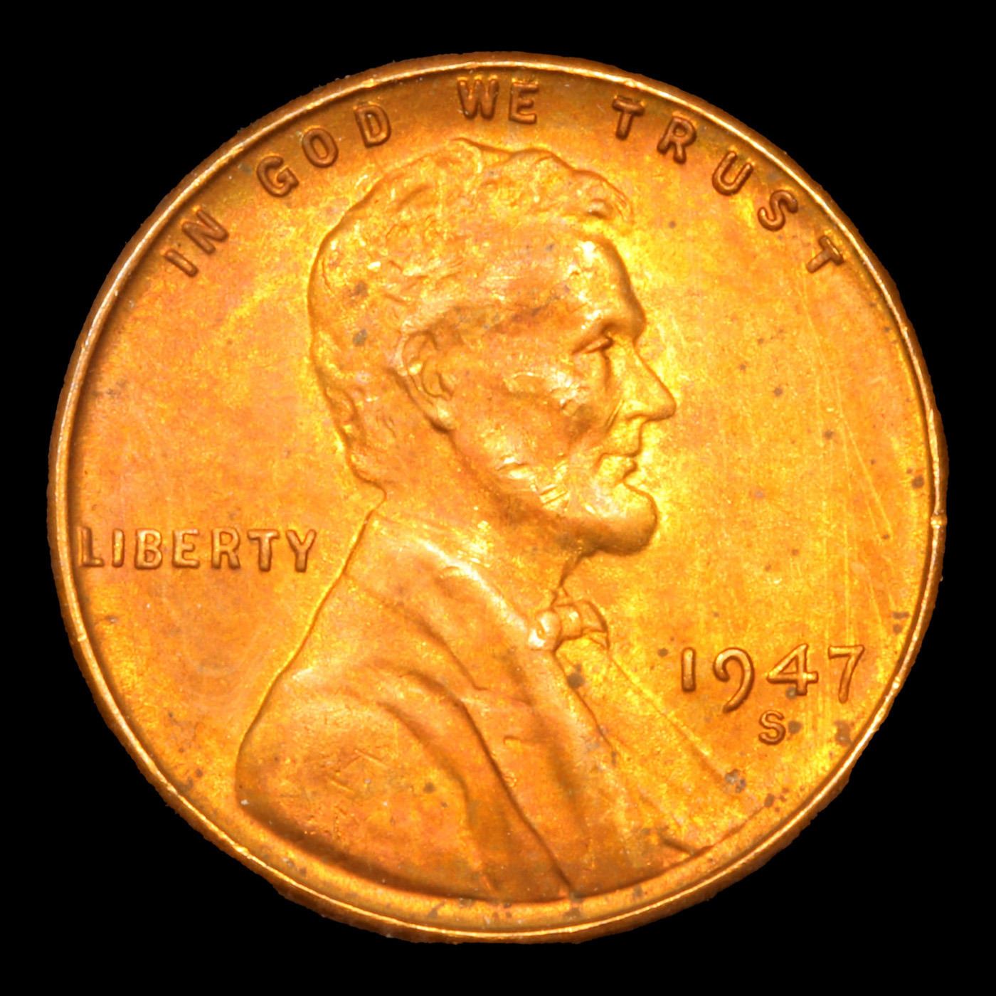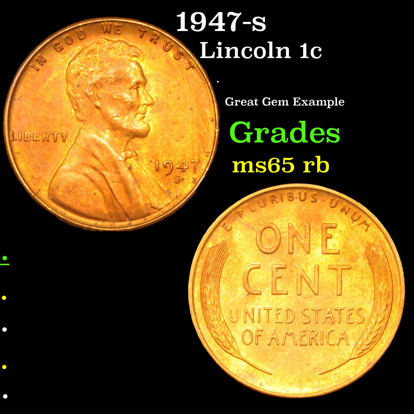 1947-s Lincoln Cent 1c Grades GEM Unc RB.