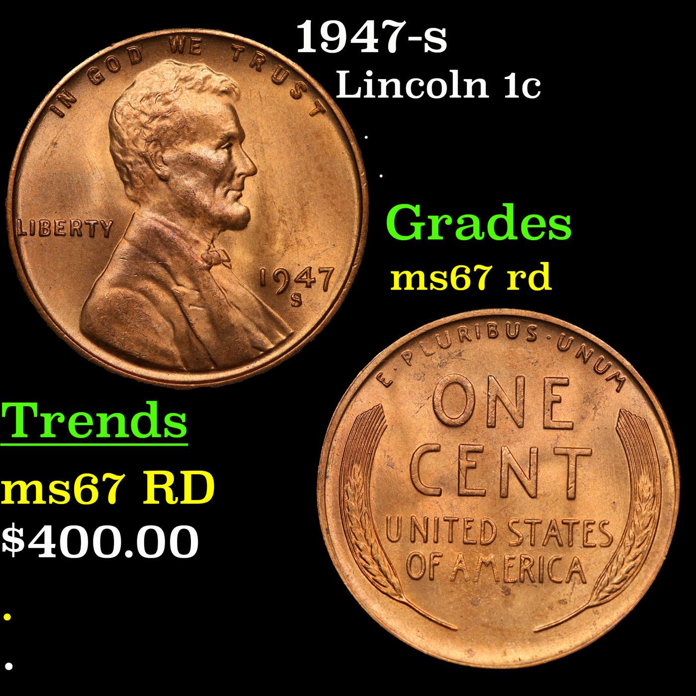 1947-s Lincoln Cent 1c Grades GEM++ Unc RD.
