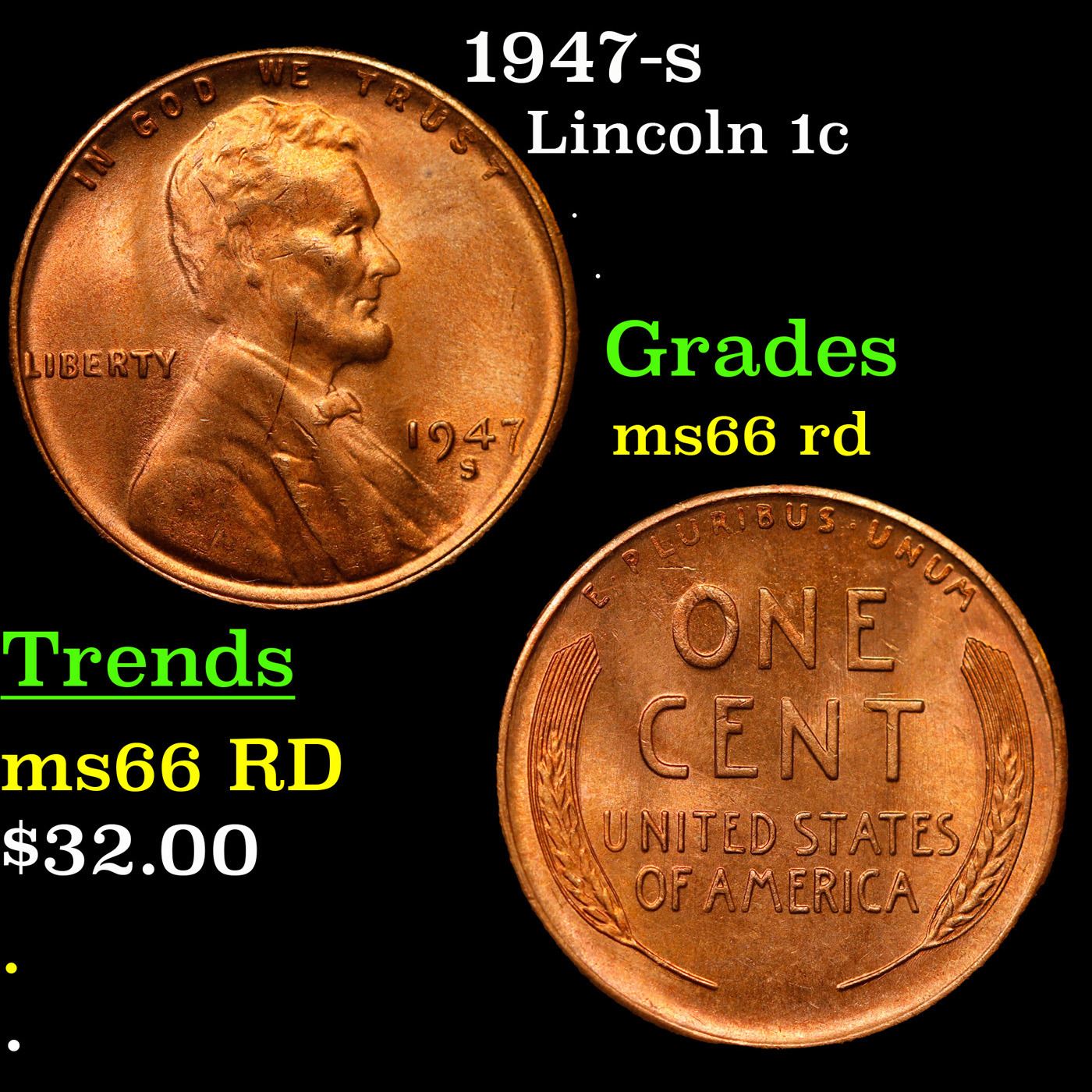 1947-s Lincoln Cent 1c Grades GEM+ Unc RD.