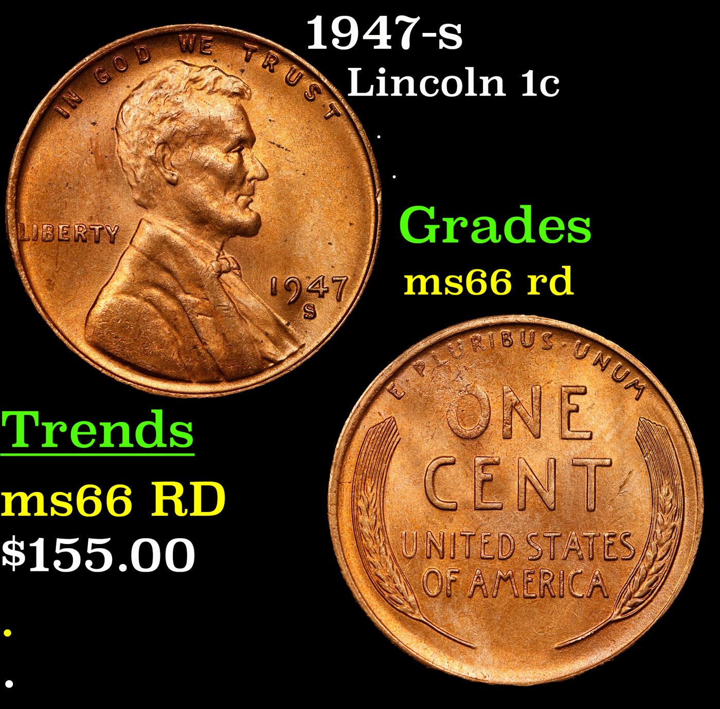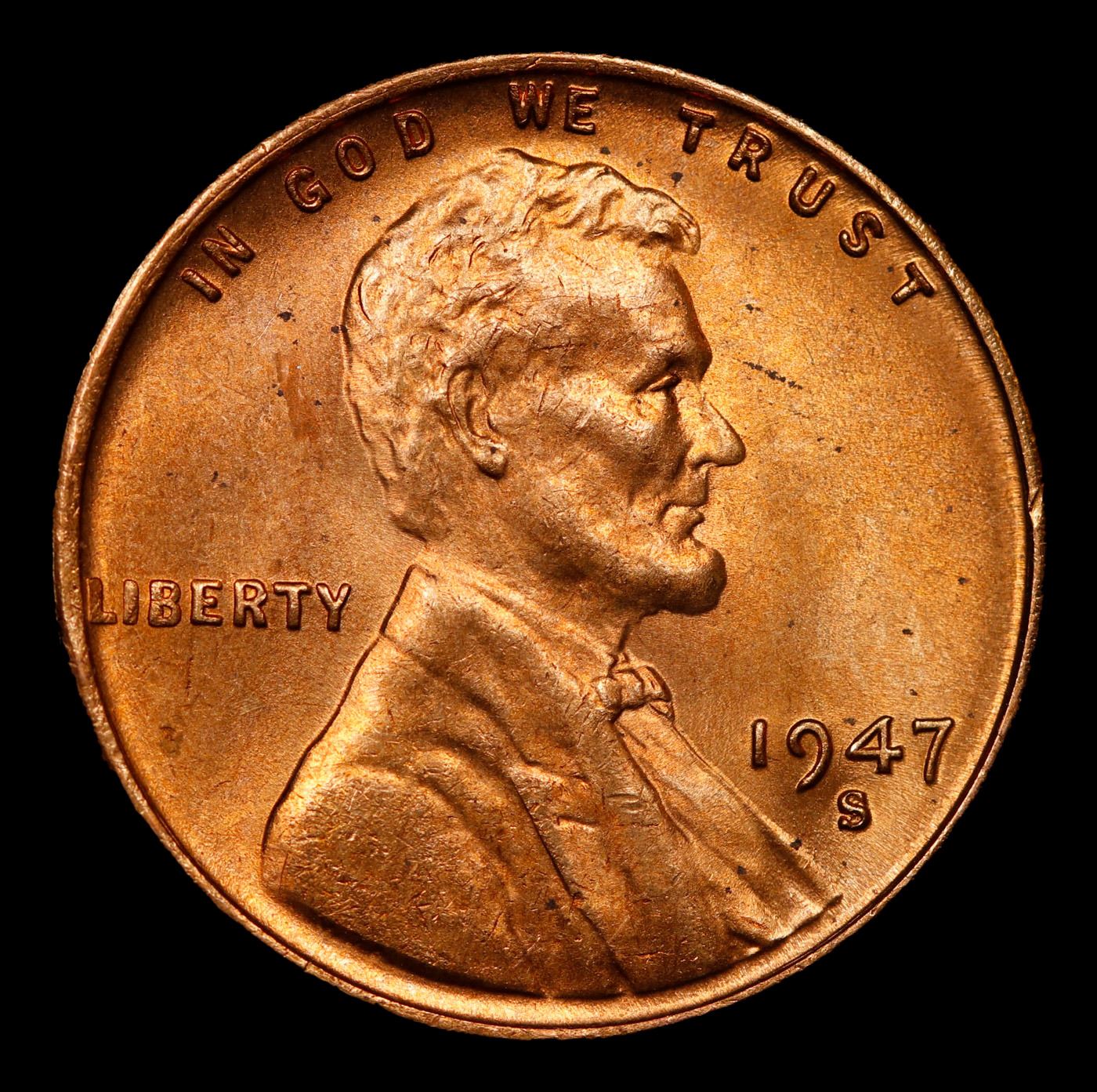 1947-s Lincoln Cent 1c Grades GEM+ Unc RD.
