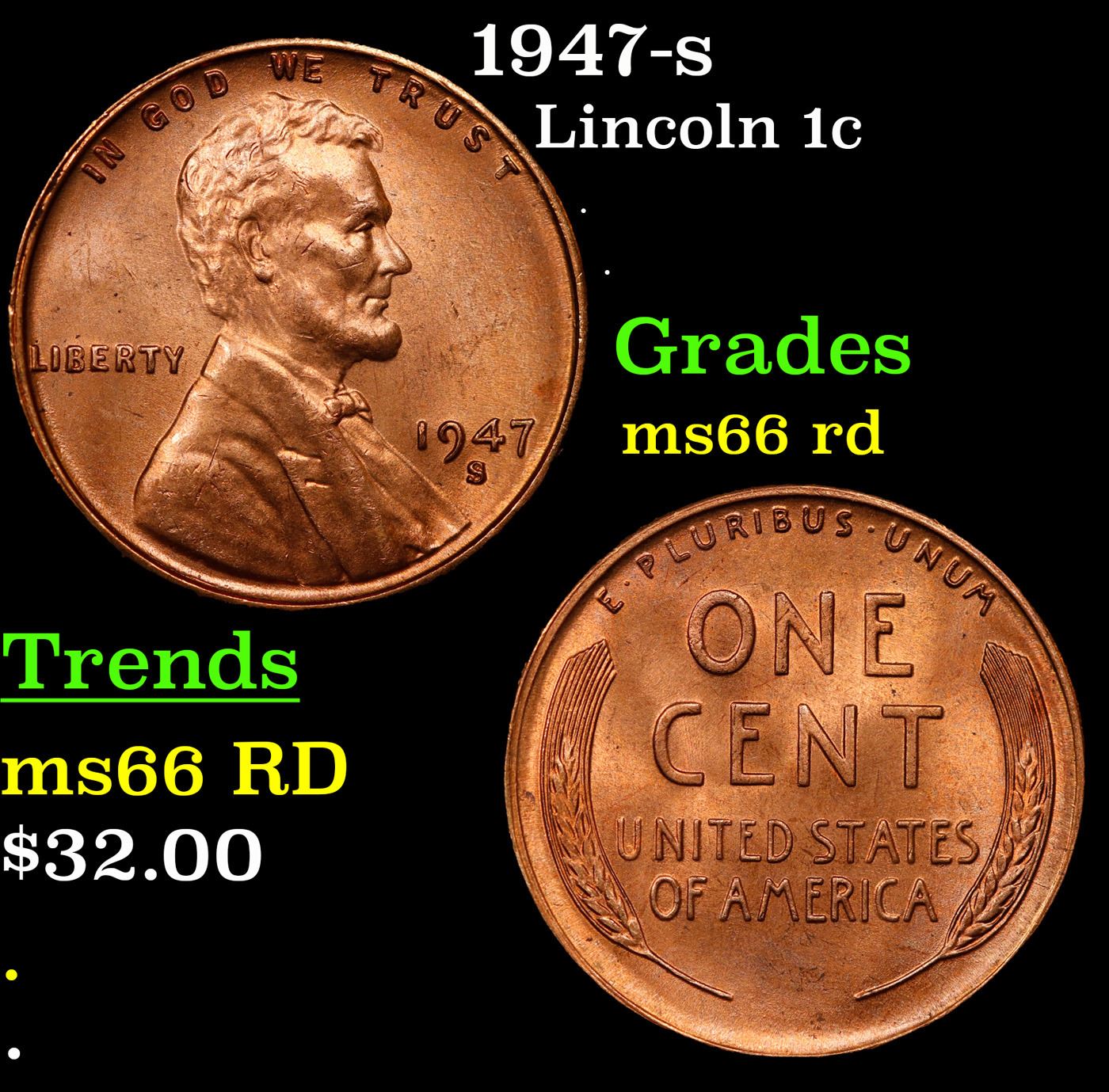 1947-s Lincoln Cent 1c Grades GEM+ Unc RD.