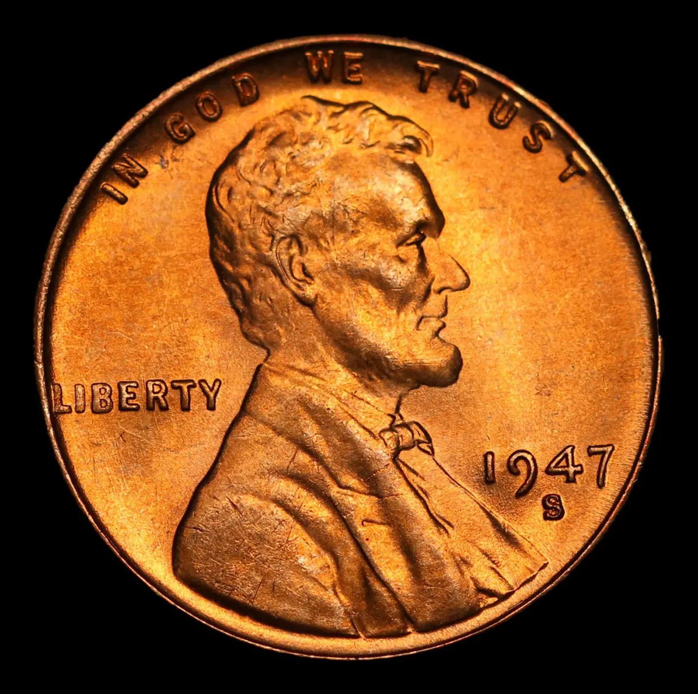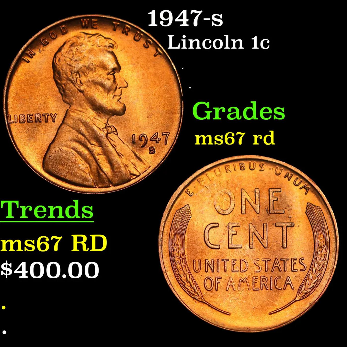 1947-s Lincoln Cent 1c Grades GEM++ Unc RD.