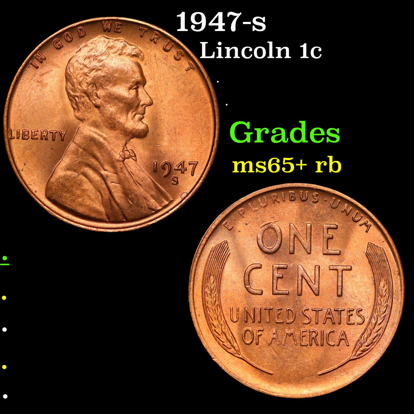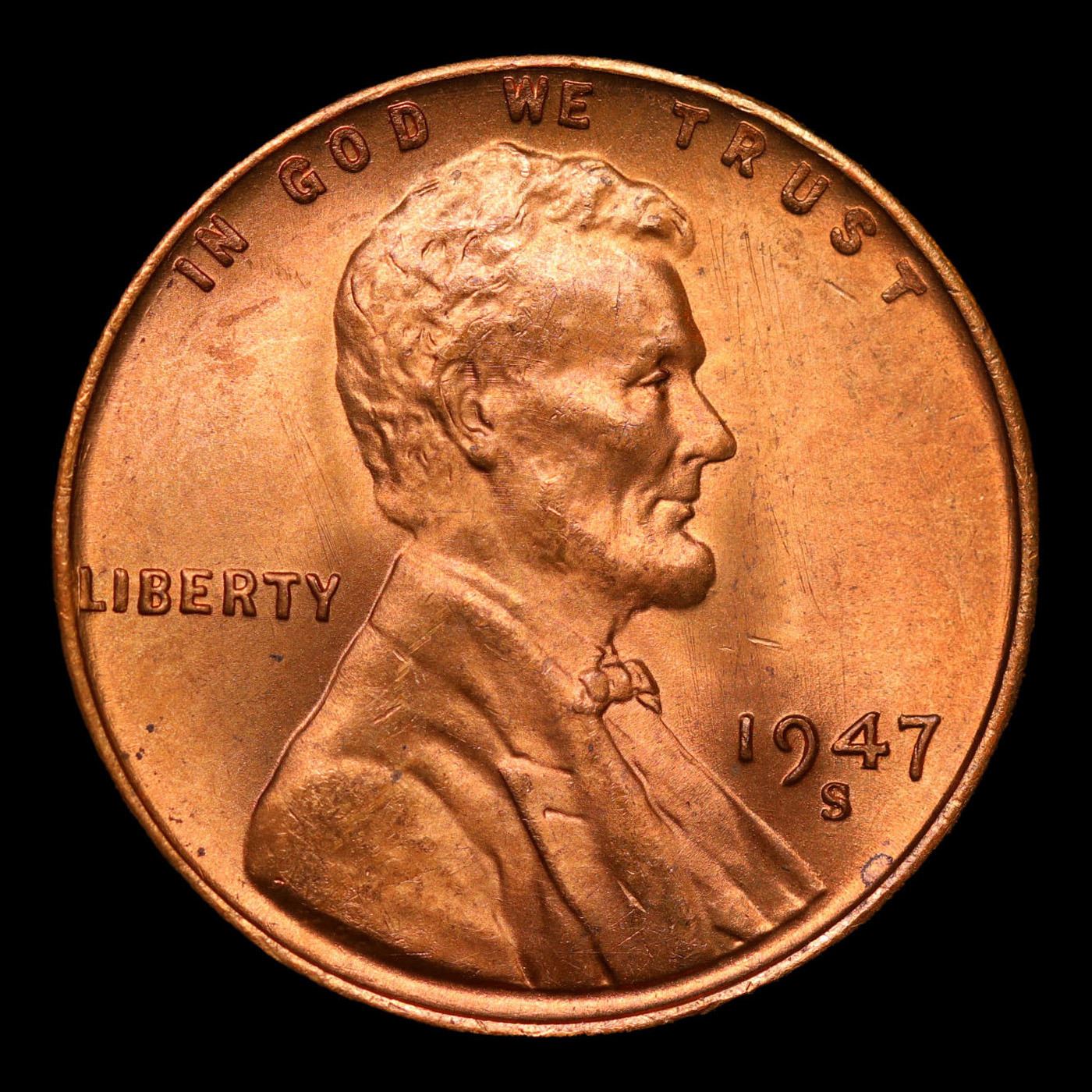 1947-s Lincoln Cent 1c Grades Gem+ Unc RB.