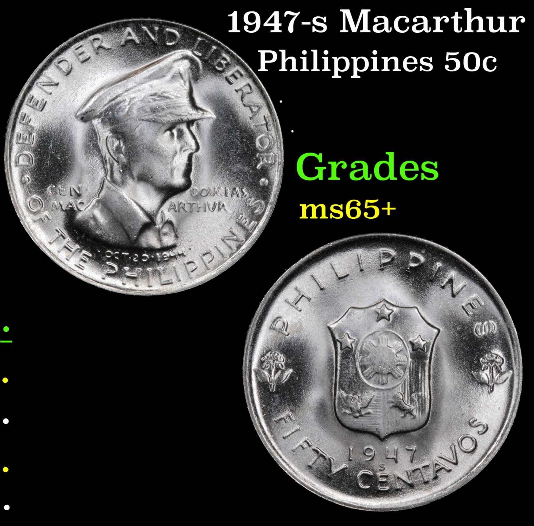 1947-s Macarthur . . Phillipines Half Dollar 50c Grades GEM+ Unc.