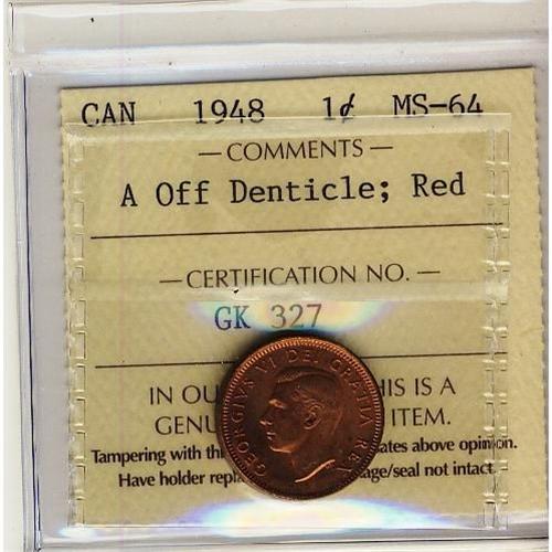 1948 1¢ A Off Dent ICCS MS64 Red, scarce this nice