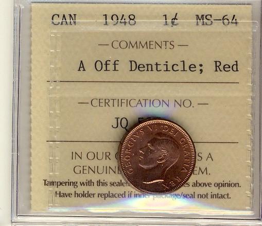 1948 1¢ A Off Dent ICCS MS64RD. Full red example.
