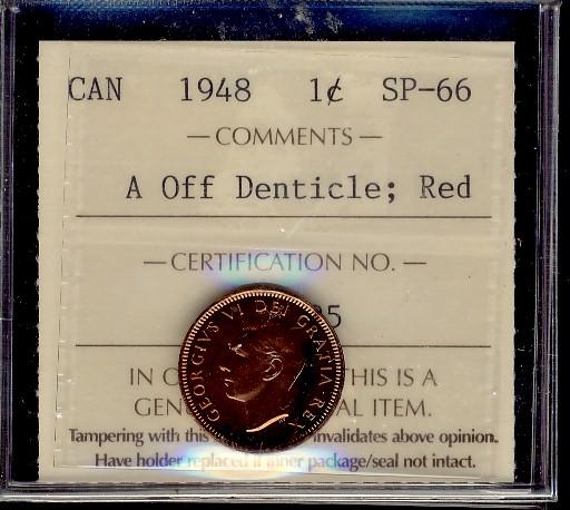 1948 1¢ A Off Dent ICCS SP66RD. A very nice and red example.