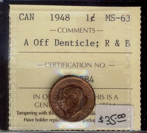 1948 1¢ A Off Denticle ICCS MS63 RB