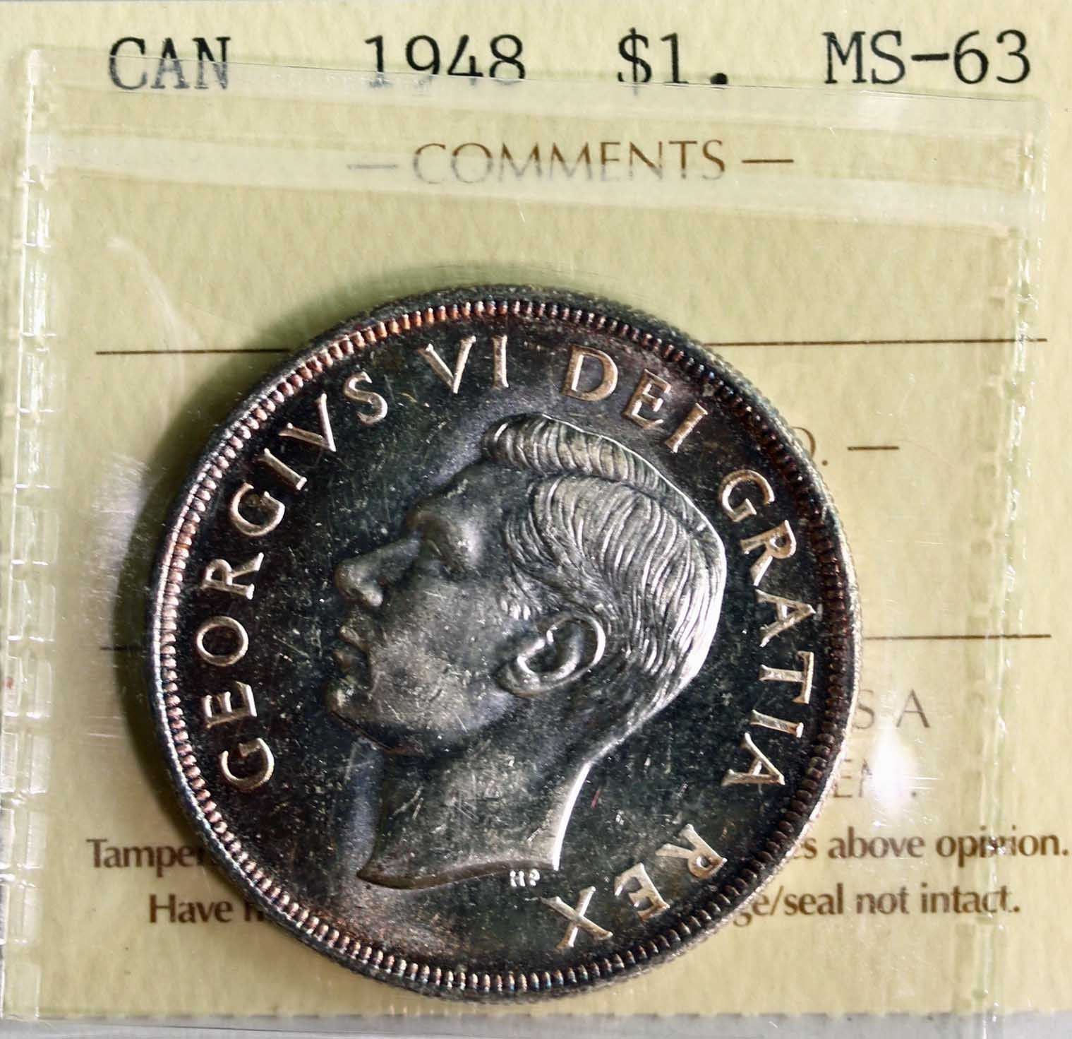 This is an Internet, Live Internet, email, phone and mail auction sale conducted. Information provided by The Canadian Numismatic Company on our web site and in this catalog is strictly AS IS and/or strictly an opinion. No warranty given. Bids are per lot. No lots will be broken. Auction sales are not approval sales. All lots shall be sold to the highest bidder as determined by the auctioneer. If any dispute arises during the sale, the auctioneer has the right to reopen the lot and put it up for sale again. The auctioneer’s decision will be final. In the case of identical (tied) bids during our Live Auctions, the earliest received bid shall take priority. In the case of a tie bid during our Sales, between a mail/fax bid and an Internet bid, the Internet bid will take precedence and obtain the lot. PLEASE CONTACT US IF YOU REQUIRE FURTHER EXPLANATION.