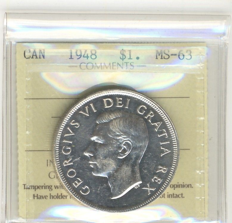 1948 $1 ICCS MS63. Brilliant and fully lustrous. Attractive example.