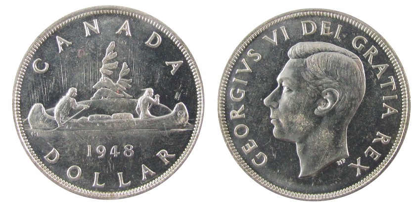 1948 $1 ICCS MS64. Brilliant and lustrous. Scarce.