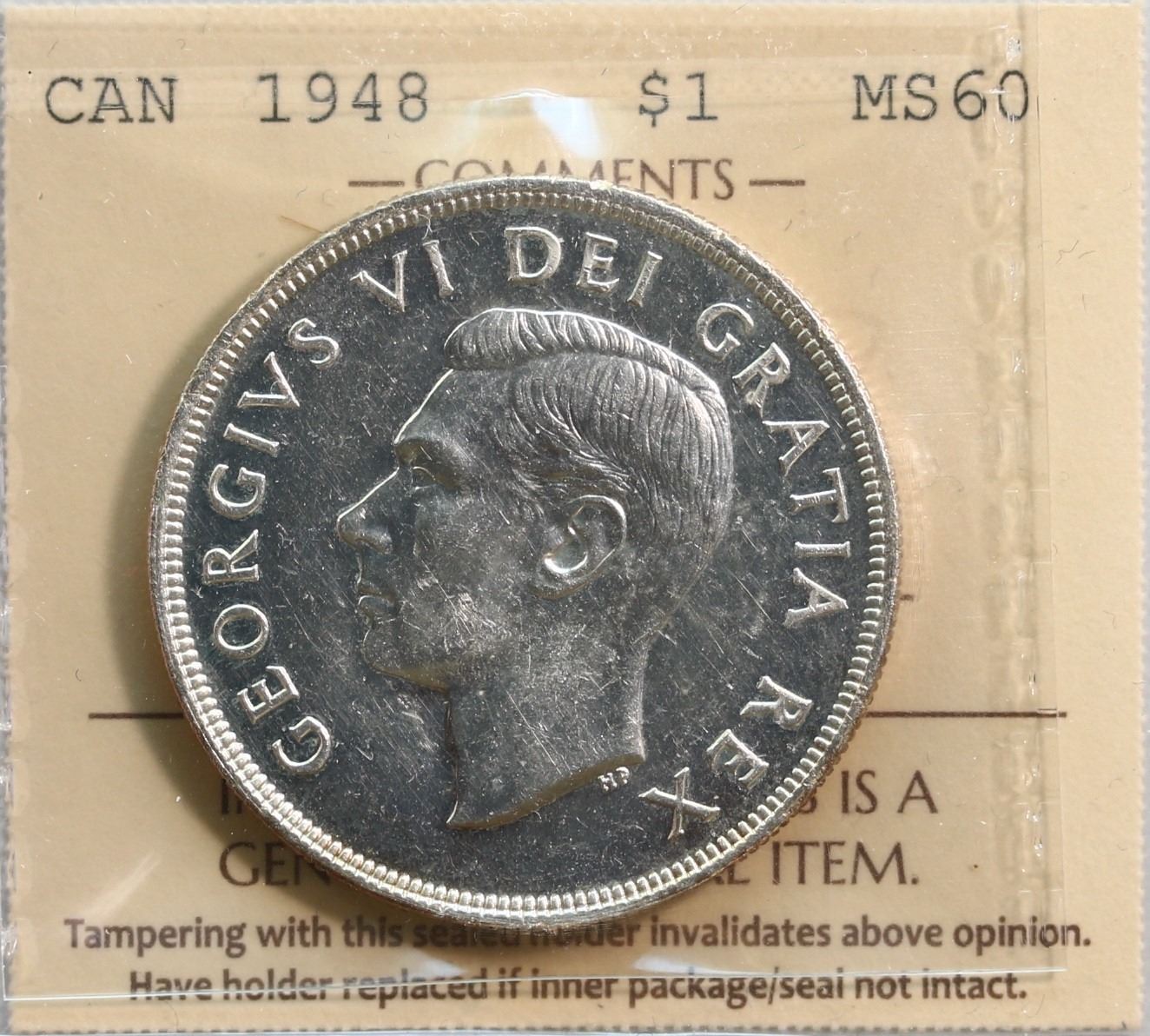 1948 $1 ICCS Mint State-60 Brilliant and lustrous.