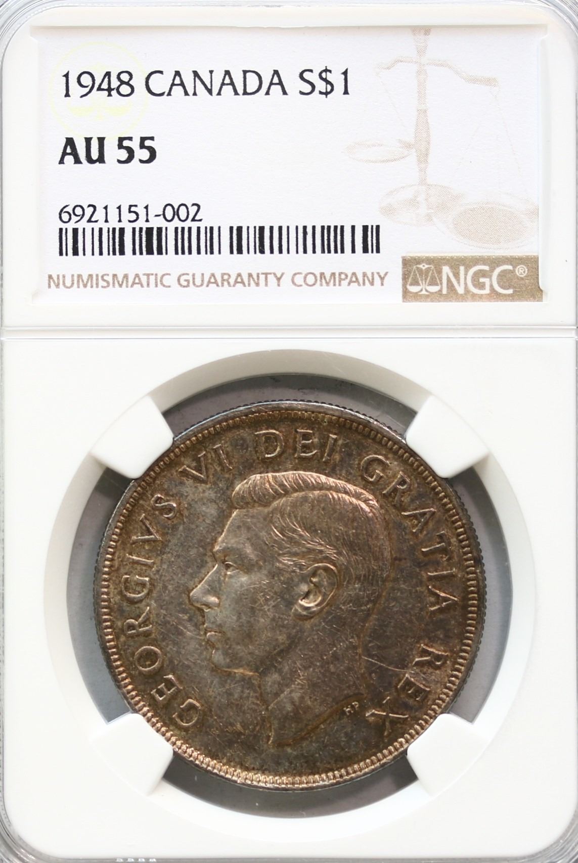 1948 $1 NGC Choice About Uncirculated-55 Lightly toned. Popular and sought after coin.