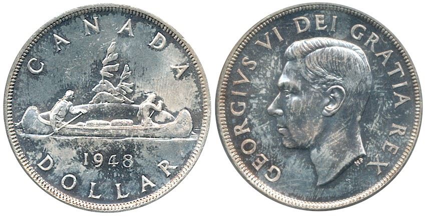 1948 $1 PCGS MS62. Attractive example with strong lustre and nice tones.