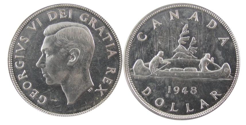 1948 $1 PCGS MS63. Full white and lustrous issue. A nice Rotated die of approx. 20%. Interesting variety.
