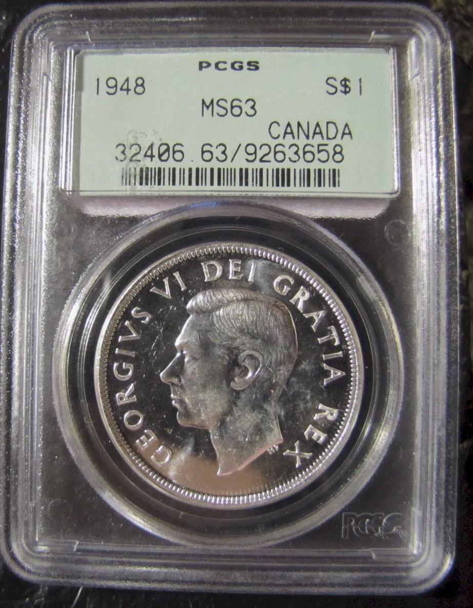 1948 $1 PCGS MS63, Full white.