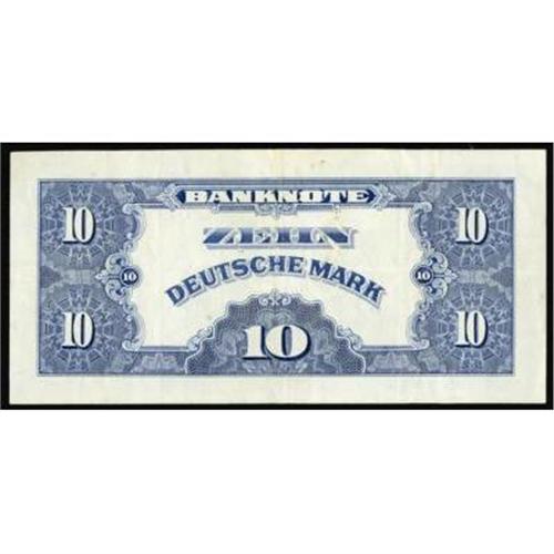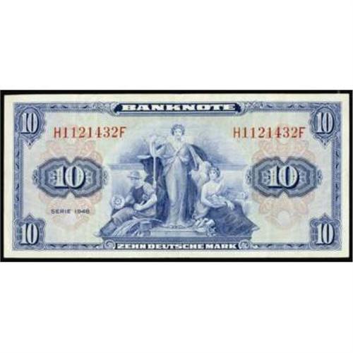 <style type="text/css"> body, td, th { font-family: Arial, Helvetica, sans-serif; font-size: 12px; color: #482424; margin: 0px; padding: 0px; } #header { background-image: url(http://www.bowersandmerena.com/ebay/images/template_v3_01.gif); clear: both; background-color: #590303; border-top-width: 2px; border-top-style: solid; border-top-color: #B38C4F; } #header #header_wrapper { height: 75px; clear: both; width: 800px; margin-right: auto; margin-left: auto; background-image: url(http://www.bowersandmerena.com/ebay/images/template_v3_03.gif); background-repeat: no-repeat; background-position: right; color: #F3EDCC; } #header #header_wrapper #header_logo { float: left; height: 75px; width: 444px; background-image: url(http://www.bowersandmerena.com/ebay/images/template_v3_02.gif); background-repeat: no-repeat; font-size: 10px; text-transform: capitalize; color: #B38C4F; } #header #header_wrapper #header_right { float: left; height: 75px; width: 356px; text-align: right; } #header #header_wrapper #header_right #headerLoginBtn { margin-bottom: 30px; } #header #header_wrapper #header_right input#txtSearch { color: #B49056; border: 1px solid #B49056; width: 175px; padding-top: 3px; padding-right: 3px; padding-bottom: 4px; padding-left: 3px; } #nav { height: 37px; background-image: url(http://www.bowersandmerena.com/ebay/images/template_v3_05.gif); clear: both; } #nav #nav_wrapper { height: 35px; width: 800px; margin-right: auto; margin-left: auto; border-left-width: 1px; border-left-style: solid; border-left-color: #B38C4F; } #nav #nav_wrapper a { padding-right: 15px; padding-left: 15px; border-right-width: 1px; border-right-style: solid; border-right-color: #B38C4F; height: 25px; padding-top: 10px; display: block; float: left; text-decoration: none; font-weight: bold; color: #5D0303; } #nav #nav_wrapper a:hover { color: #B38C4F; } #nav #nav_wrapper #search { float: right; padding-top: 7px; } #nav #nav_wrapper #search #txtSearch { font-family: Arial, Helvetica, sans-serif; font-size: 10px; text-transform: uppercase; color: #D2AE75; border: 1px solid #B38C4F; padding: 3px; } #content_bgd { background-image: url(http://www.bowersandmerena.com/ebay/images/template_v3_09.gif); background-repeat: repeat-y; background-position: center; padding-top: 15px; padding-bottom: 15px; background-color: #FBFBDB; } #content_wrapper { clear: both; height: auto; width: 800px; margin-right: auto; margin-left: auto; } .LotDetailWhite { line-height:normal; font-size:13px; font-family: arial,helvetica,sans-serif; color: White; font-weight: bold; } .LotDetailInformation { line-height:normal; font-size: 13px; font-family: arial,helvetica,sans-serif; } .LotDetailMessage { line-height:normal; font-size: 13px; font-family: arial,helvetica,sans-serif; color: red; } } tr.HeaderAuctionTitle td { color: #000000; font-weight: bold; padding: 2px; background-image: url(http://www.bowersandmerena.com/ebay/images/template_v3_05.gif); background-repeat: repeat-x; border-bottom-width: 1px; border-bottom-style: solid; border-bottom-color: #B38C4F; } table.AuctionSummary a, table.AuctionSummary a:link, table.AuctionSummary a:visited { color: #0000FF; text-decoration: none; } } td.tableHeaderLeft { border-left-width: 1px; border-left-style: solid; border-left-color: #B38C4F; } td.tableHeaderRight { border-right-width: 1px; border-right-style: solid; border-right-color: #B38C4F; } td.tableCellMiddle { border-left-width: 1px; border-left-style: solid; border-left-color: #B38C4F; border-right-width: 1px; border-right-style: solid; border-right-color: #B38C4F; padding: 5px; } tr.footer td { border-top-width: 1px; border-top-style: solid; border-top-color: #B38C4F; } </style> </head> <body> <div id="header"> <div id="header_wrapper"> <div id="header_logo"> </div> <div id="header_right"> </div> </div> </div> <div id="nav"> <div id="nav_wrapper"> <a href="http://www.bowersandmerena.com">Our eBayLive Auctions</a> <a href="#PaymentInfo">Payment Information</a> <a href="#ShippingInfo">Shipping Information</a> <a href="#About">About Bowers and Merena</a> </div> </div> <div id="content_bgd"> <div id="content_wrapper"> <table width="100%" border="0" cellpadding="5" cellspacing="0" class="AuctionSummary"> <tbody> <tr class="HeaderAuctionTitle" style="height: 25px;"> <td align="left" class="tableHeaderLeft" > </td> <td align="center" class="tableHeaderRight"> <span style="font-size: large;">Lot #2840. Germany Federal Republic. 1948 10 Deutsche Mark. US Army Command. Very Fine.</span> </td> </tr> <tr> <td colspan="3" class="tableCellMiddle"> P-5a. A lovely 10 Deutsche Mark note with strong blue inks and great technical quality for the grade. Featuring a stunning allegorical scene at the center this note will surely impress collectors.